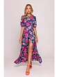 100% polyester PODŠÍVKA 95% polyester 5% elastan MATERIÁL Materiál: jemná potištěná tkanina, matný povrch PODROBNOSTI O PRODUKTU Výstřih: kulatý výstřih vpředu, otevřená záda Kapsy: žádné Vzor: pestrobarevný, květinový Podšívka: částečně podšitá, živůtek podšitý Zapínání: skrytý zadní zip, vzadu knoflíky potažené látkou Model: M858 Navrženo a vyrobeno v Polsku Modelka na fotografii je vysoká 171 cm a má na sobě velikost S STŘIH A VÝSTŘIH Střih: ženský/šitý na míru Tvar: vypasovaný živůtek s rozšířenou sukní a vysokým rozparkem na nohou Délka: maxi Délka rukávů: krátké nadýchané rukávy, nabírané, s manžetou