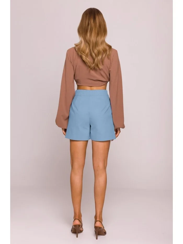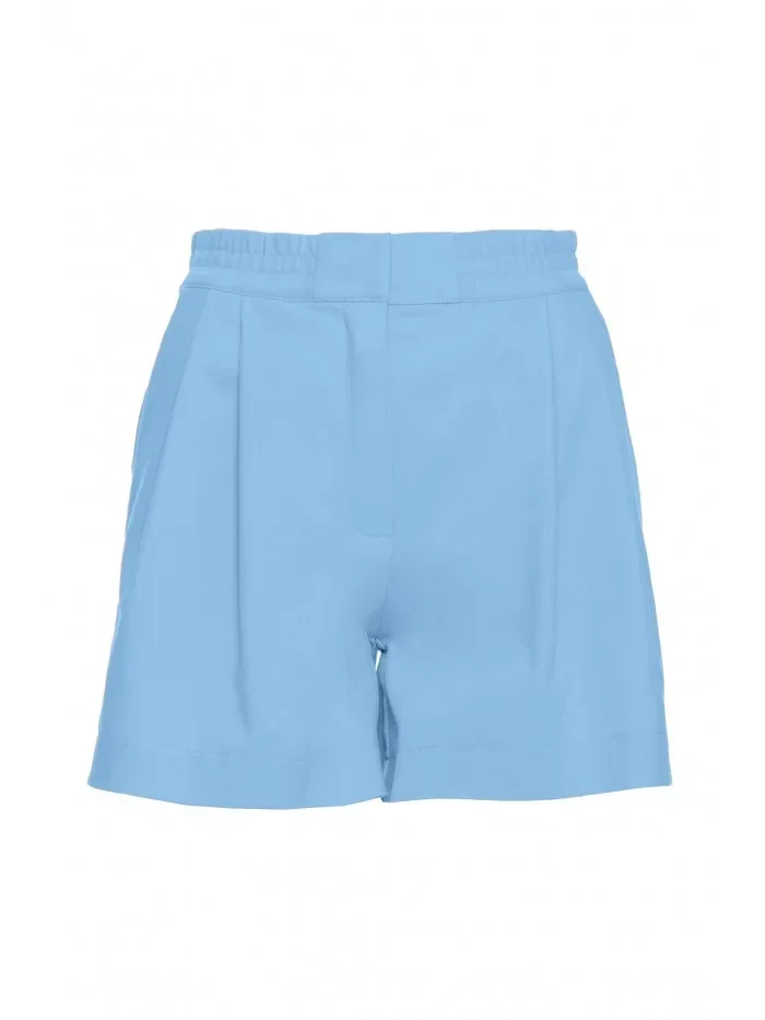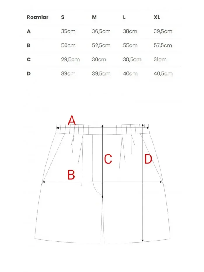 76% bavlna 21% polyester 3% elastan MATERIÁL Materiál: bavlněná tkanina, matná úprava PODROBNOSTI O PRODUKTU Pas: vysoký střih Pásek: elastický pásek, plisovaný přední díl Zapínání: skrytý zip se dvěma knoflíky Kapsy: boční kapsy Model: M860 Navrženo a vyrobeno v Polsku Modelka na fotografii měří 171 cm a má na sobě velikost S STŘIH A VÝSTŘIH Střih: uvolněný a pohodlný Tvar: mírně rozšířené nohavice Délka: krátké nohavice