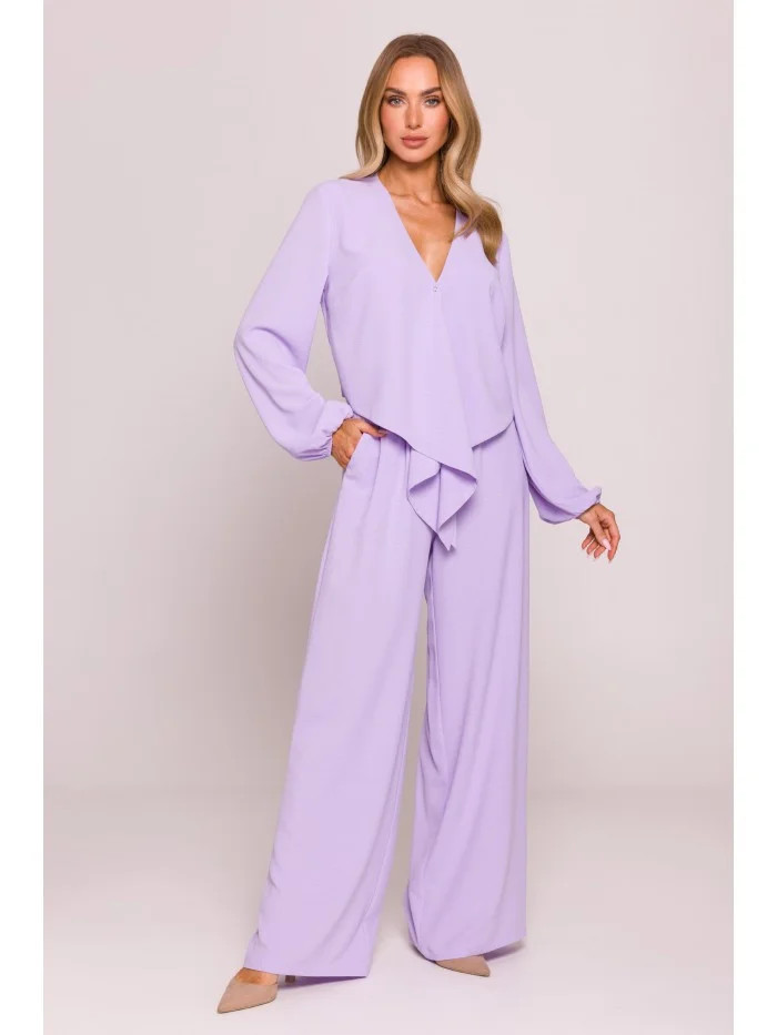 95% polyester 5% elastan MATERIÁL Materiál: lehká strukturovaná tkanina (krep), matný povrch PODROBNOSTI O VÝROBKU Výstřih: hluboký výstřih do V Zapínání: zapínání vpředu na patentky, s volitelným zavazováním vpředu Rukávy: dlouhé, nadýchané, zakončené elastickými manžetami Model: M861 Navrženo a vyrobeno v Polsku Modelka na fotografii měří 171 cm a má na sobě velikost S STŘIH A VÝSTŘIH Střih: střižený top Tvar: rovný střih s asymetrickým předním dílem a možností zavazování, mírně nadýchané rukávy Délka: střižený - končí v pase
