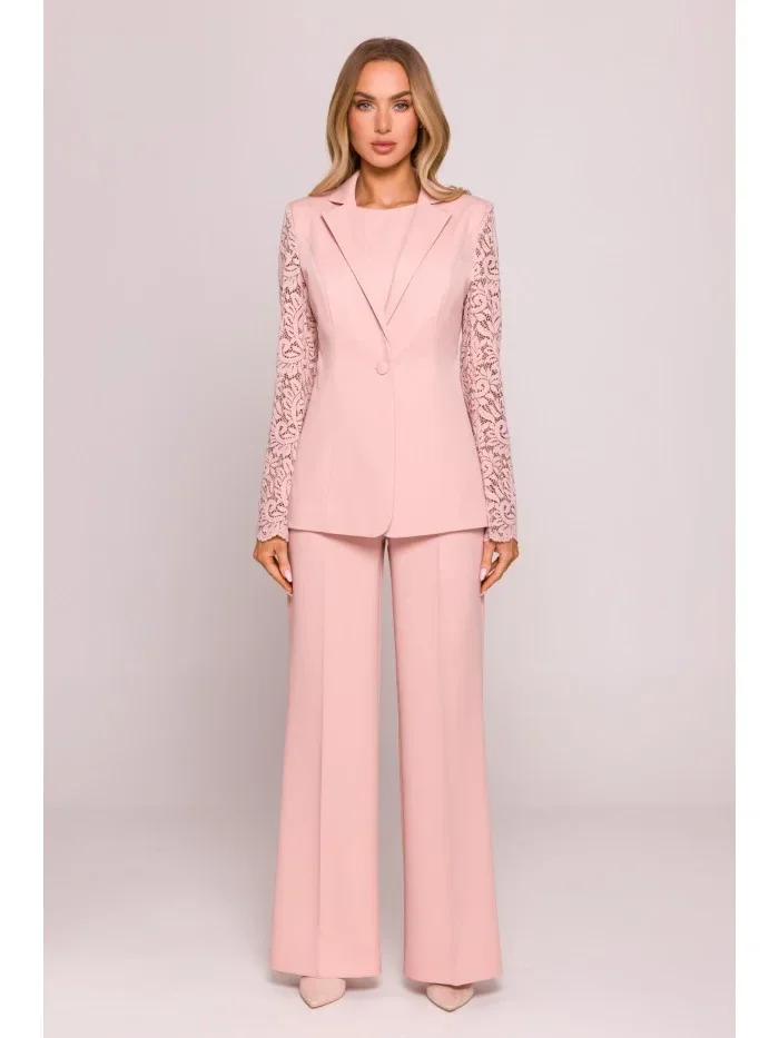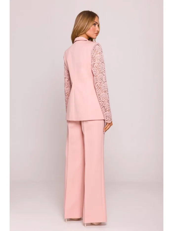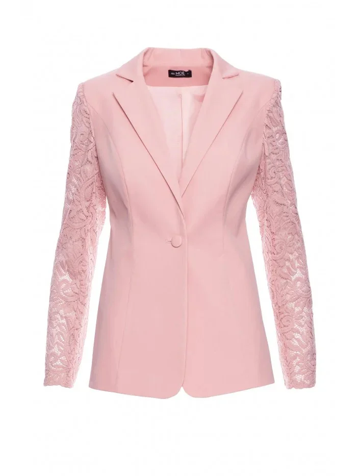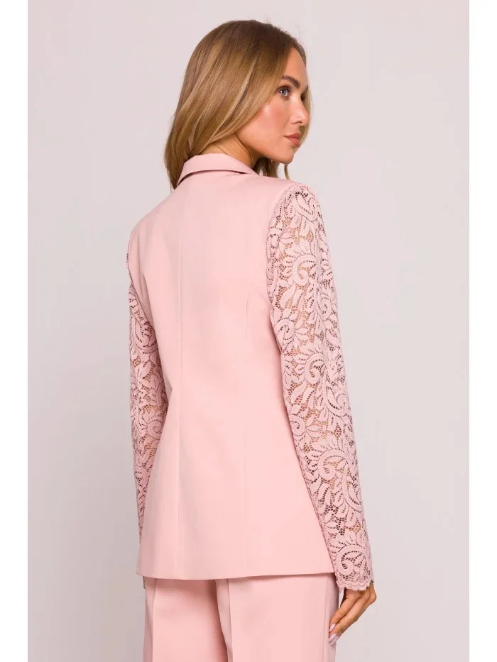 M865 Blejzr s krajkovými panely a jedním knoflíkem - pudrový