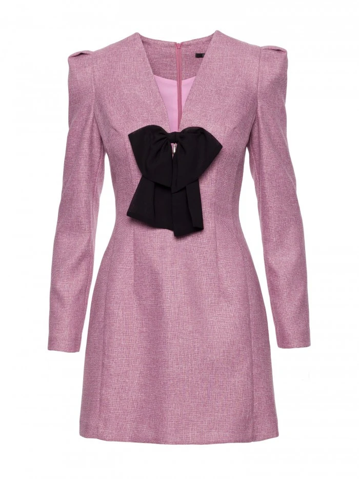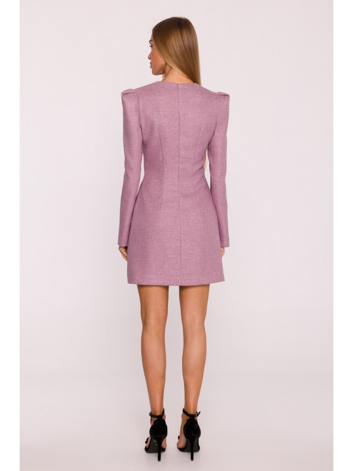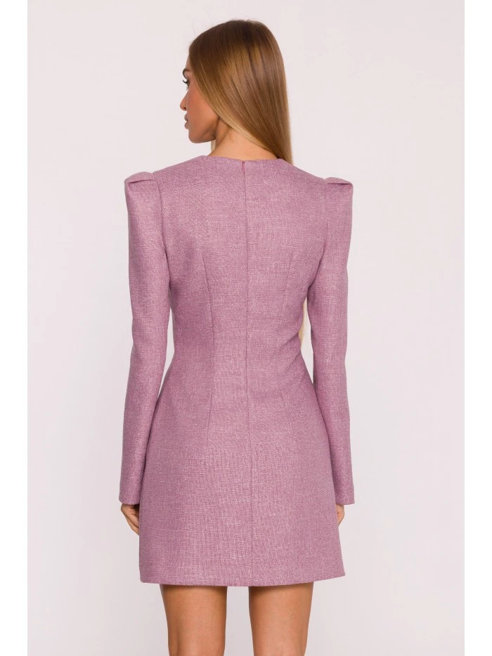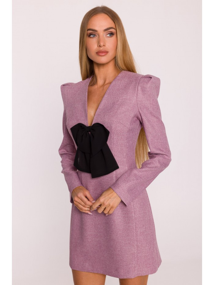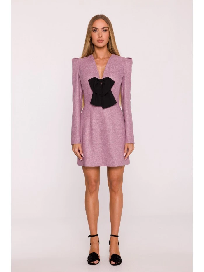 HLAVNÍ LÁTKA: 70% polyester 27% wiskoza 3% elastan PODŠÍVKA: 95% polyester 5% elastan MATERIÁL: Materiál: Tkanina Tweed PODROBNOSTI O PRODUKTU: Výstřih: Hluboký výstřih do V Rukávy: Dlouhé Zapínání: Skrytý zip na zádech Kapsy: Žádné Podšívka: Ano Vzor: Mélange Detaily: Ozdobný odnímatelný detail - šifonová mašle s přívěskem ve stylu šperku Model: M869 Navrženo a vyrobeno v Polsku Modelka na fotografii měří 171 cm a má na sobě velikost S Střih a střih: Střih: Mírně přizpůsobený Tvar: Zvýrazňující pas, mírně rozšířená ramena s puff detaily Délka: Mini