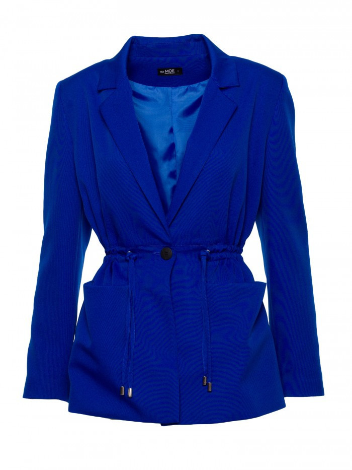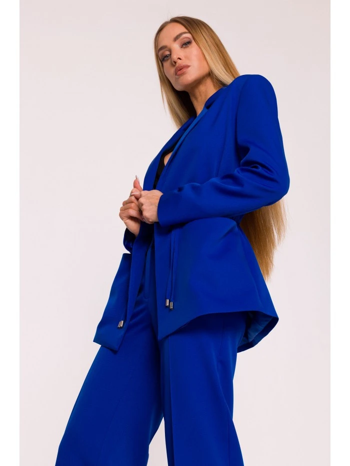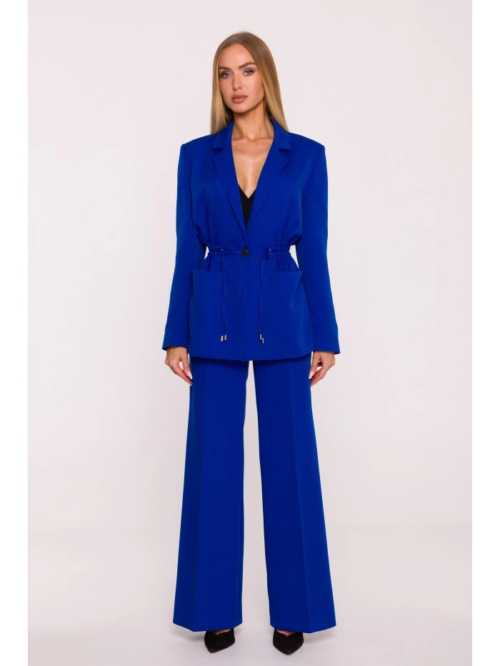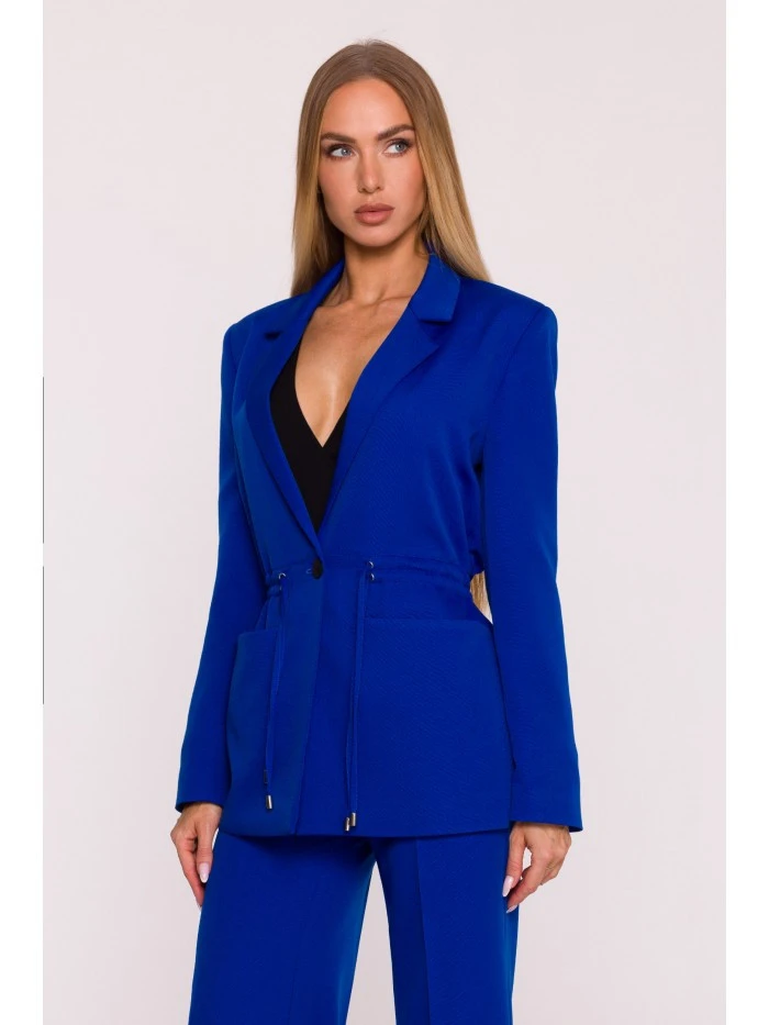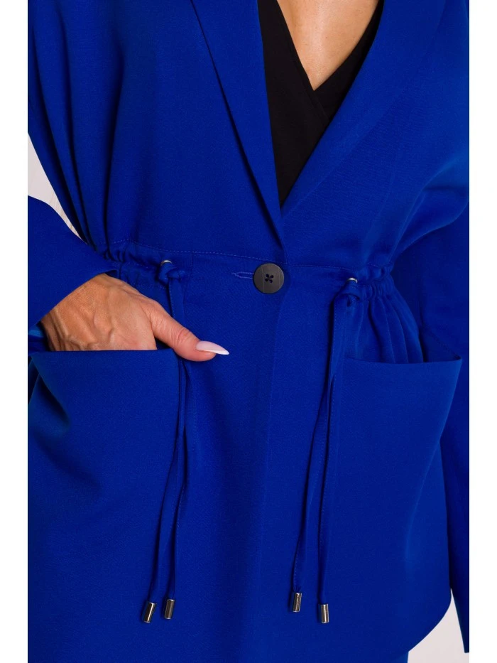 HLAVNÍ LÁTKA: 95% polyester 5% elastan PODŠÍVKA: 100% polyester MATERIÁL Látka: Hladká tkaná látka s matným povrchem PODROBNOSTI O PRODUKTU Límec: Klasický s klopami Zapínání: Na jeden knoflík a nastavitelné stahovací šňůrky Pas: Nastavitelný pomocí stahovacích šňůrek zakončených kovovými koncovkami Kapsy: Velké nakládané kapsy Rukávy: Dlouhé, bez manžet Podšívka: Plně podšité Model: M873 Navrženo a vyrobeno v Polsku Modelka na fotografii měří 171 cm a má na sobě velikost S STŘIH A VÝSTŘIH Střih: Volný, oversized střih s nastavitelným pasem Tvar: Rovný s možností stažení v pase Délka: Po boky