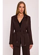 HLAVNÍ LÁTKA: 95% polyester 5% elastan PODŠÍVKA: 100% polyester MATERIÁL Látka: Hladká tkaná látka s matným povrchem PODROBNOSTI O PRODUKTU Límec: Klasický s klopami Zapínání: Na jeden knoflík a nastavitelné stahovací šňůrky Pas: Nastavitelný pomocí stahovacích šňůrek zakončených kovovými koncovkami Kapsy: Velké nakládané kapsy Rukávy: Dlouhé, bez manžet Podšívka: Plně podšité Model: M873 Navrženo a vyrobeno v Polsku Modelka na fotografii měří 171 cm a má na sobě velikost S STŘIH A VÝSTŘIH Střih: Volný, oversized střih s nastavitelným pasem Tvar: Rovný s možností stažení v pase Délka: Po boky