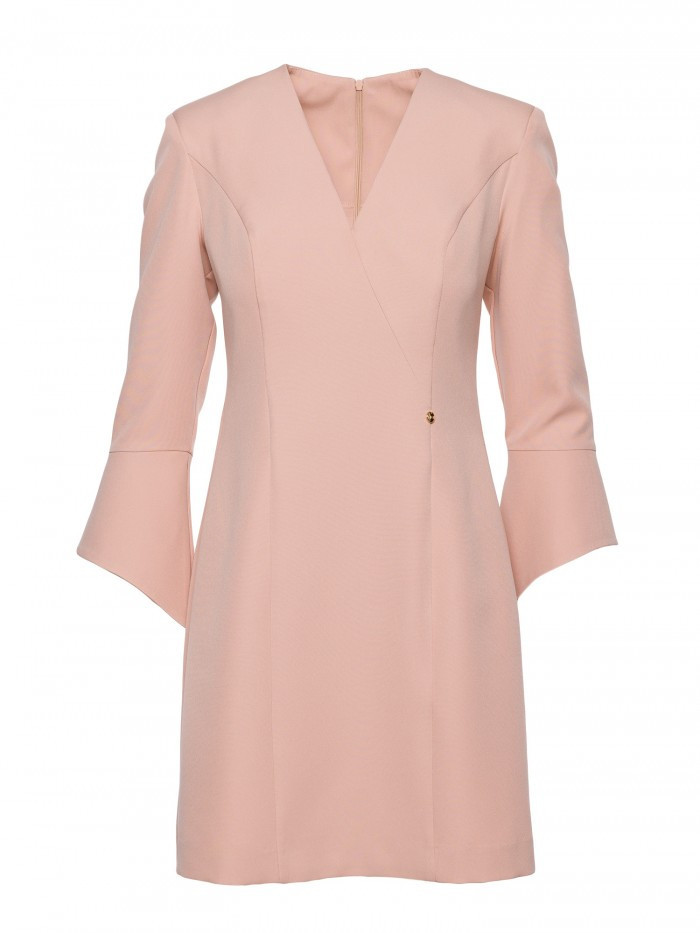 95% polyester 5% elastan MATERIÁL Tkanina: Hladká tkaná tkanina s matným povrchem PODROBNOSTI O PRODUKTU Výstřih: ve tvaru V Rukávy: délka 7/8, mírně rozšířené na manžetách Zapínání: skrytý zip na zádech Kapsy: žádné Podšívka: žádná Detaily: kovová destička s logem v pase Model: M876 Navrženo a vyrobeno v Polsku Modelka na fotografii měří 171 cm a má na sobě velikost S STYL A STŘIH Styl: rovný, mírně vypasovaný Tvar: mírně vypasovaný na ramenou, volný směrem k lemu Délka: mini