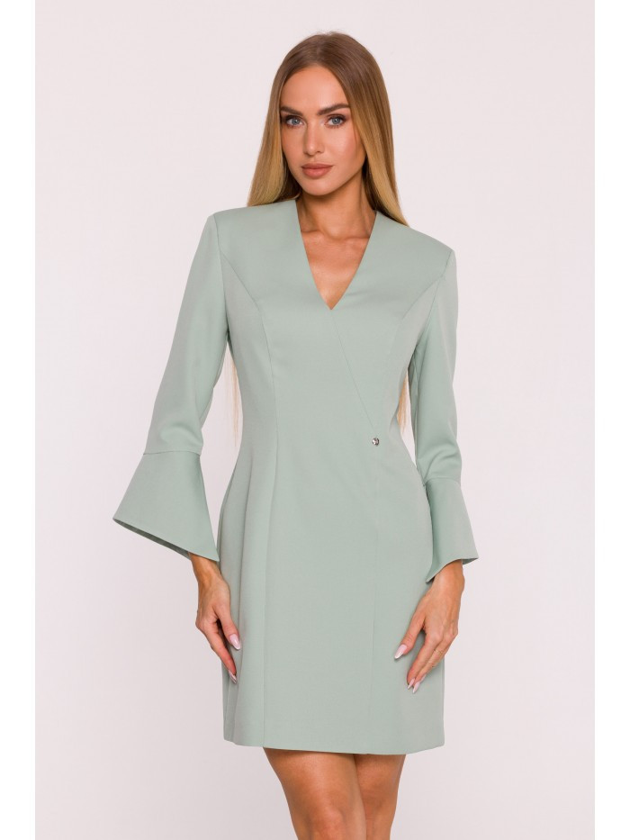 95% polyester 5% elastan MATERIÁL Tkanina: Hladká tkaná tkanina s matným povrchem PODROBNOSTI O PRODUKTU Výstřih: ve tvaru V Rukávy: délka 7/8, mírně rozšířené na manžetách Zapínání: skrytý zip na zádech Kapsy: žádné Podšívka: žádná Detaily: kovová destička s logem v pase Model: M876 Navrženo a vyrobeno v Polsku Modelka na fotografii měří 171 cm a má na sobě velikost S STYL A STŘIH Styl: rovný, mírně vypasovaný Tvar: mírně vypasovaný na ramenou, volný směrem k lemu Délka: mini