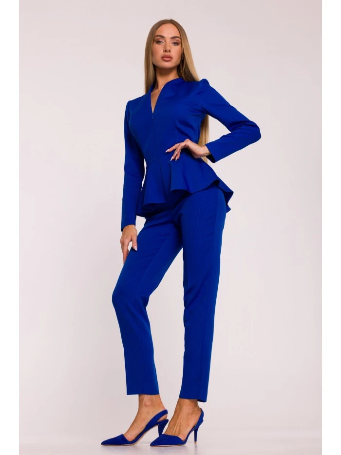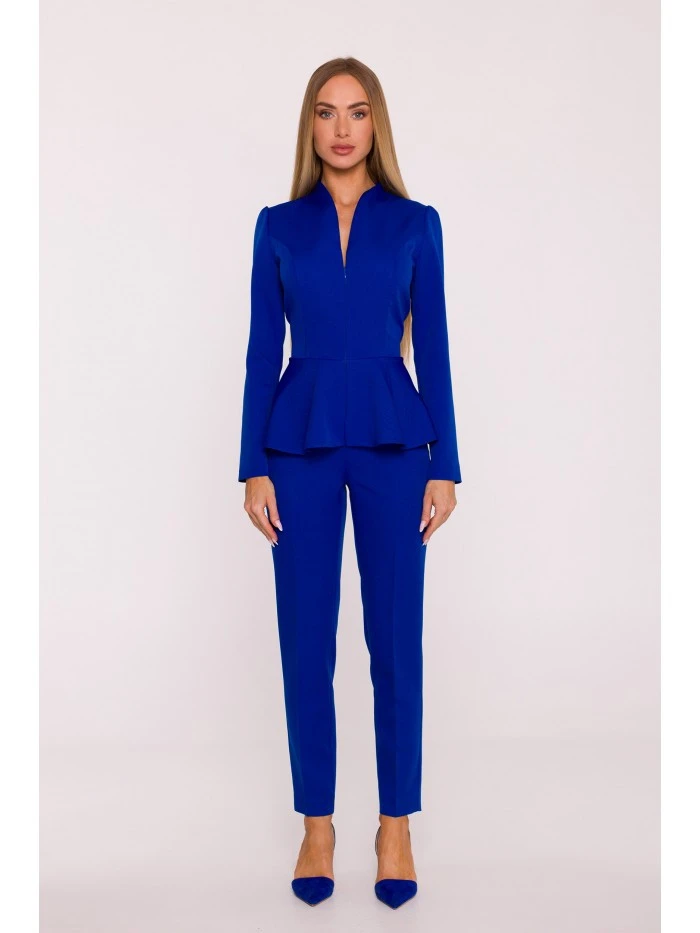 materiál: 95% polyester 5% elastan Tkanina: hladká tkanina s matným povrchem PODROBNOSTI O PRODUKTU Výstřih: výstřih do V s nastavitelnou hloubkou Rukávy: dlouhé Zapínání: vpředu na skrytý zip, vzadu na skrytý zip Pas: vypasovaný, zvýrazněný stylovým peplumem Nohy: zúžené směrem k lemu, délka ke kotníkům Kapsy: žádné Podšívka: žádná Model: M878 Navrženo a vyrobeno v Polsku Modelka na fotografii je vysoká 171 cm a má na sobě velikost S STYL A STŘIH Styl: jednodílný overal, vypasovaný v horní části těla, s peplumem zakrývajícím boky, část hýždí a oblast břicha Tvar: zvýrazňující postavu, s peplumem v pase a zúženými nohavicemi
