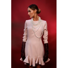 M880 Šaty s volánkovým lemem - béžové