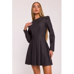 50% bavlna 47% polyester 3% elastan MATERIÁL Tkanina: látka džínového vzhledu - mírně tuhá, matná a jemně pružná. PODROBNOSTI O PRODUKTU Výstřih: kulatý, klasický Rukávy: dlouhé se záhyby na ramenou Zapínání: skrytý zip na zádech Kapsy: žádné Podšívka: žádná Model: M884 Navrženo a vyrobeno v Polsku Modelka na fotografii měří 171 cm a má na sobě velikost S STŘIH A VÝSTŘIH Střih: vypasovaný horní díl, rozšířený spodní díl se záhyby Tvar: vymezený pas, zvýrazněná ramena Délka: mini