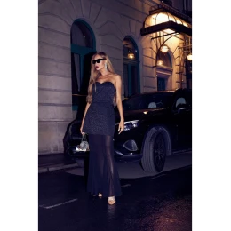 M893 Vrstvené korzetové šaty se šifonovou sukní - černé