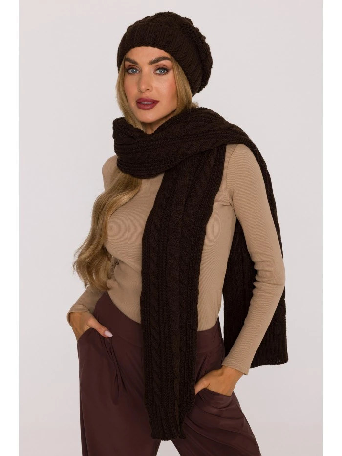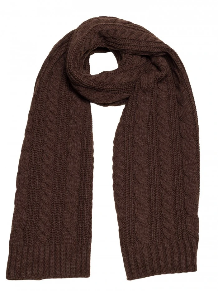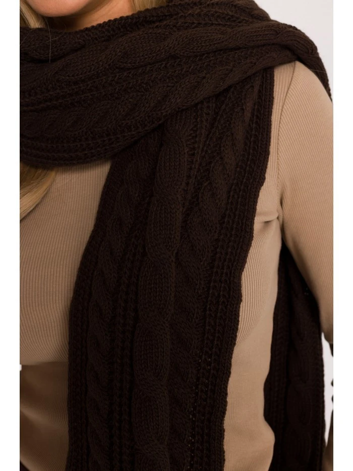 HLAVNÍ VLÁKNO: 85% akryl 15% nylon MATERIÁL Měkká příze s hustým úpletem a ozdobným vzorem kabelů PODROBNOSTI O VÝROBKU Střih: dlouhá rovná šála Styl: široký, obepínající Vzor: klasické kabelové úplety