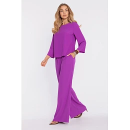 M906 Palazzo kalhoty s pružným pasem a bočními kapsami - levandulová barva