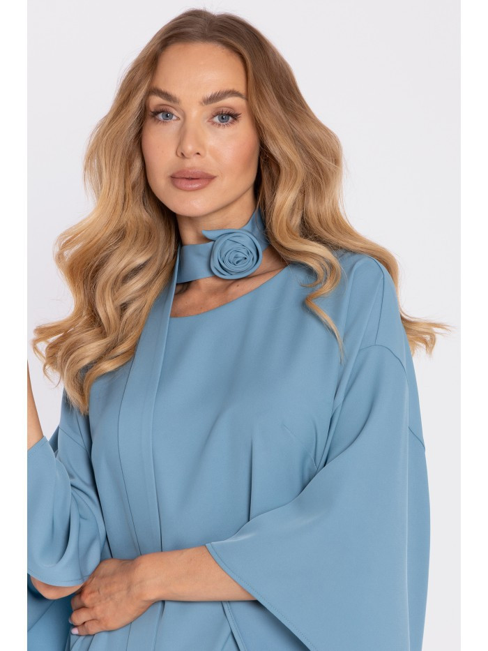 M908 Šaty s ozdobnými širokými rukávy - nebesky modré