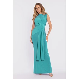 M913 Draped maxi šaty s ohrnutým pasem a panelem - tyrkysové