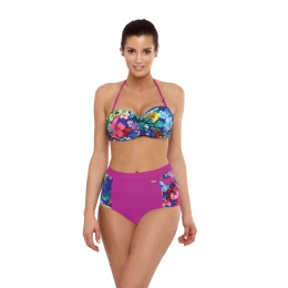 Tato podprsenka s vyztuženými košíčky, kosticemi a velkým push-upem okamžitě pozvedne, vytlačí nahoru a opticky zvětší vaše prsa, takže budete na pláži vypadat sexy. Push-up se dodává v každé velikosti plavek a není z modelu snímatelný. Ramenní popruhy jsou zcela odnímatelné. Svázané vzadu. Kalhotky jsou vyšší, zakrývají bříško a jejich květované boky navíc pomáhají opticky zeštíhlit linii boků. Jedny z nejlepších plavek sezóny! Mega dávka ženskosti! Italská tkanina. Složení: 80 % polyamid, 20 % elastan.