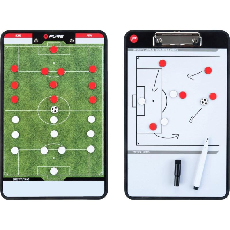 Tabule má dvě strany pro použití, jedna zobrazuje celé hřiště, což je ideální pro diskusi o obecné taktice, zatímco druhá strana se zaměřuje na polovinu hřiště, což usnadňuje analýzu konkrétních situací, jako jsou například pevné pasáže hry.