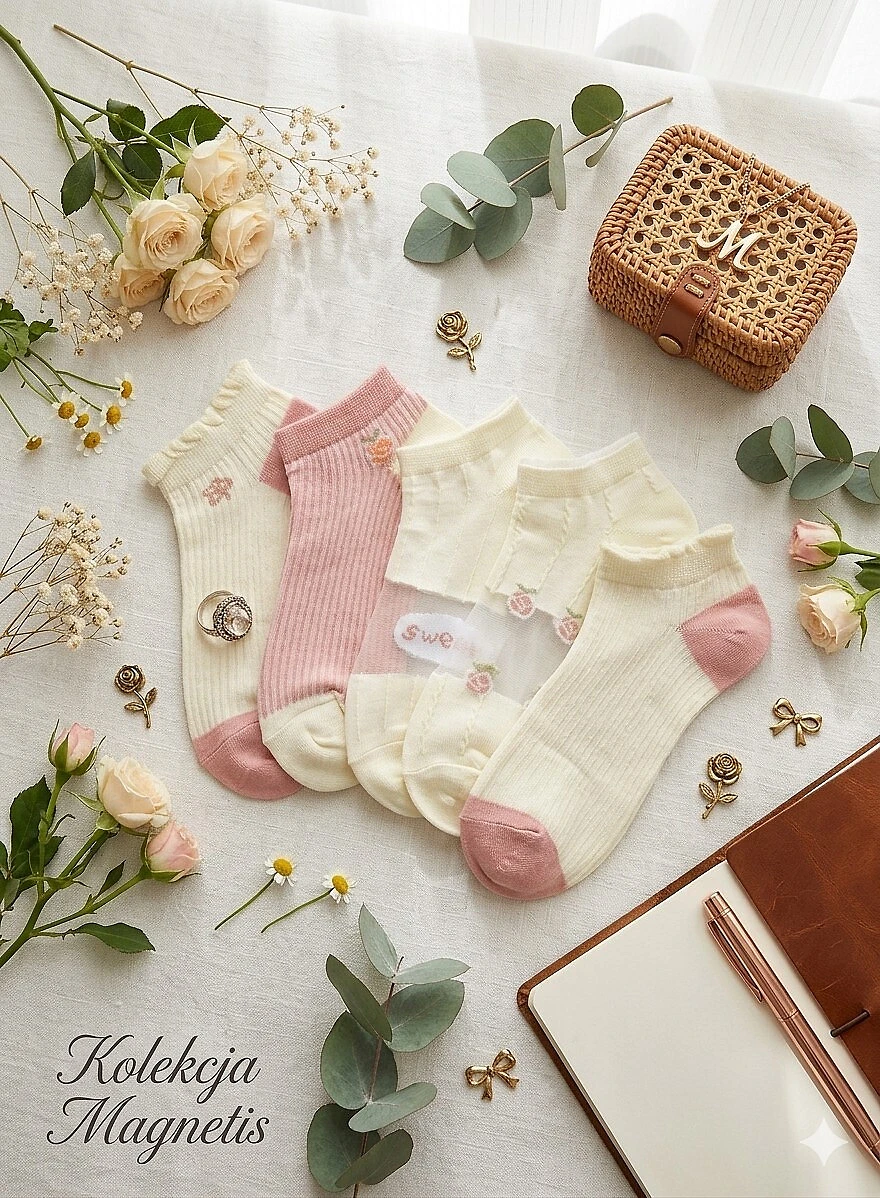- k dostání v barvě ecru, růžové zdobené pruhovaným vzorem, květinami, nápisem