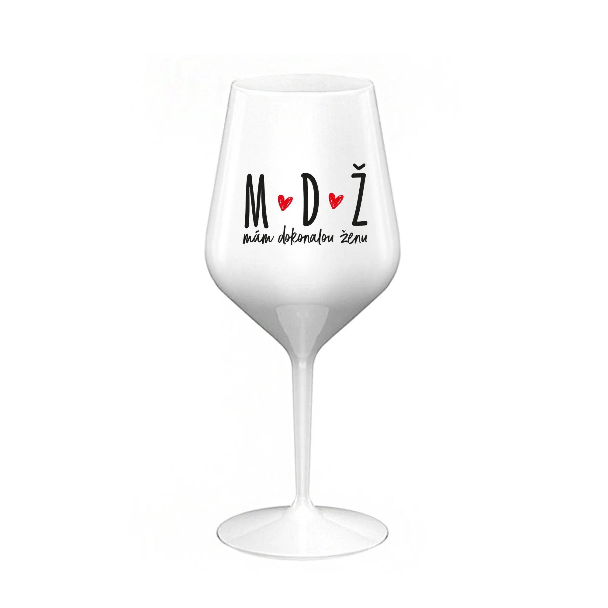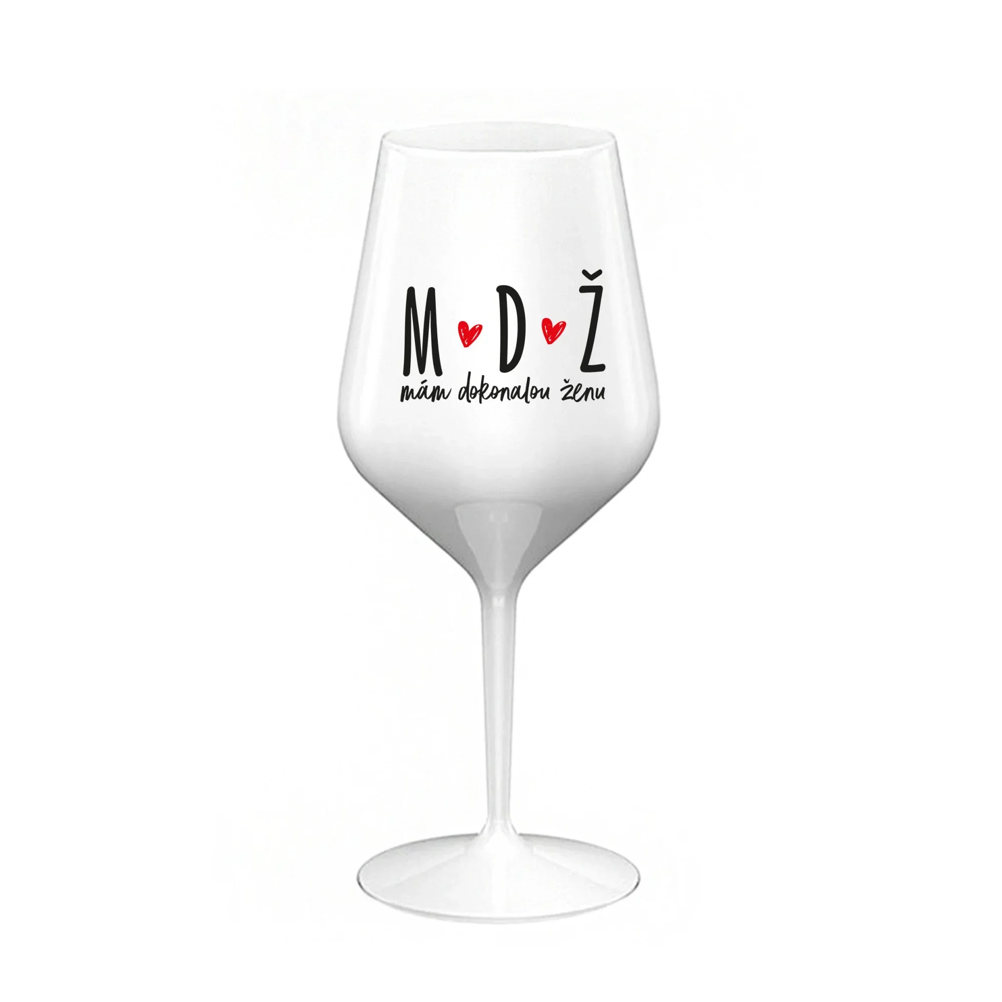 MÁM DOKONALOU ŽENU - bílá nerozbitná sklenice na víno 470 ml