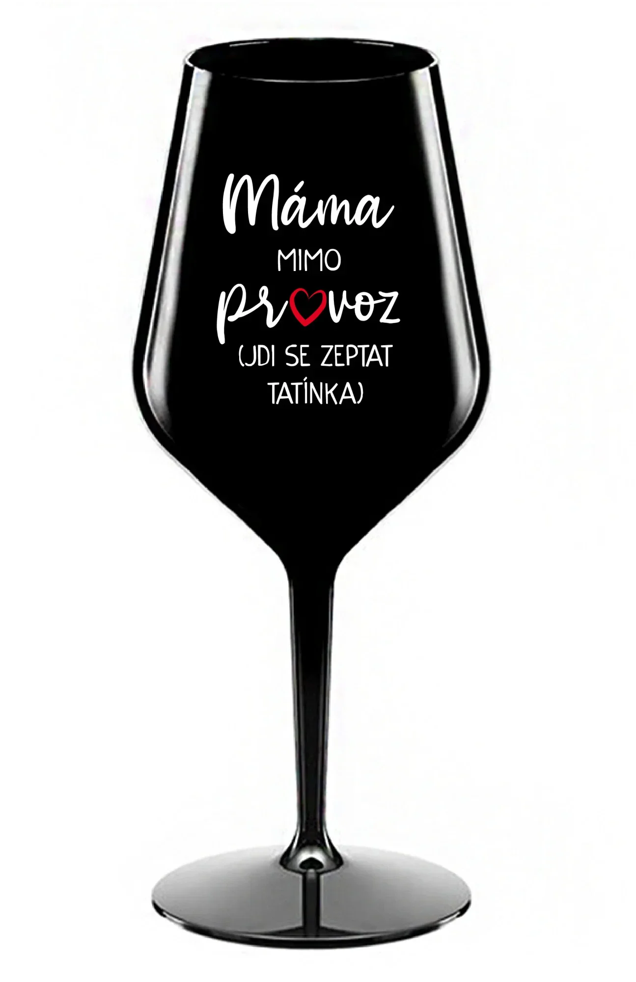 MÁMA MIMO PROVOZ (JDI SE ZEPTAT TATÍNKA) - černá nerozbitná sklenice na víno 470 ml