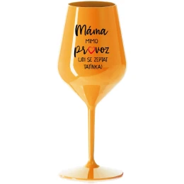 MÁMA MIMO PROVOZ (JDI SE ZEPTAT TATÍNKA) - oranžová nerozbitná sklenice na víno 470 ml