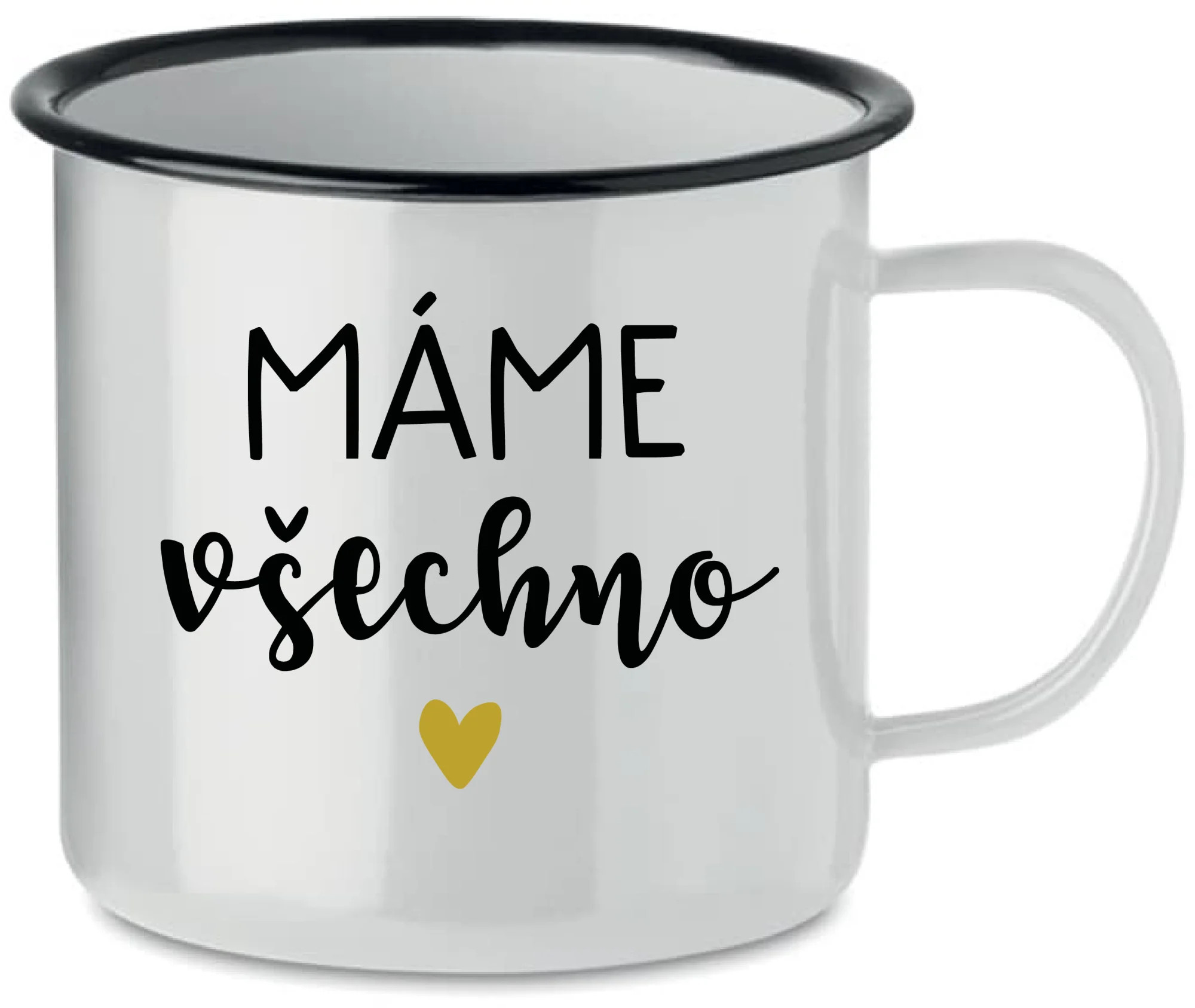 Smaltovaný Plecháček pro Chvíle Pohody - S Úsměvem a Teplem V našem rychlém světě je důležité najít si chvilku klidu a pohody. Naše nová kolekce smaltovaných plecháčků je jako stvořená právě pro tyto momenty. Každý plecháček je vyroben s láskou a pečlivostí, aby doprovázel vaše chvíle odpočinku, ať už si vychutnáváte šálek voňavé kávy, lahodného čaje nebo teplého kakaa. S objemem 350 ml jsou tyto tradiční smaltované hrnky perfektními společníky pro každý den. A co je na nich nejlepší? Každý z nich nese vtipný motiv: MÁME VŠECHNO, který rozjasní váš den a přinese úsměv na tvář. Tyto hrnky jsou jako malé pohlazení pro duši - ideální pro chvíle, kdy jste sami sebou, nebo pro ty nezapomenutelné okamžiky strávené s vašimi nejbližšími. Zapomeňte na chvíli na všechny starosti a užijte si klidný moment s naším smaltovaným plecháčkem. Objednejte si jej nyní a připravte se na maximální požitek z každého doušku! Doporučujeme ruční mytí tohoto produktu pro zachování jeho kvality a trvanlivosti. Nedoporučujeme umisťovat do myčky na nádobí.