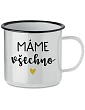 Smaltovaný Plecháček pro Chvíle Pohody - S Úsměvem a Teplem V našem rychlém světě je důležité najít si chvilku klidu a pohody. Naše nová kolekce smaltovaných plecháčků je jako stvořená právě pro tyto momenty. Každý plecháček je vyroben s láskou a pečlivostí, aby doprovázel vaše chvíle odpočinku, ať už si vychutnáváte šálek voňavé kávy, lahodného čaje nebo teplého kakaa. S objemem 350 ml jsou tyto tradiční smaltované hrnky perfektními společníky pro každý den. A co je na nich nejlepší? Každý z nich nese vtipný motiv: MÁME VŠECHNO, který rozjasní váš den a přinese úsměv na tvář. Tyto hrnky jsou jako malé pohlazení pro duši - ideální pro chvíle, kdy jste sami sebou, nebo pro ty nezapomenutelné okamžiky strávené s vašimi nejbližšími. Zapomeňte na chvíli na všechny starosti a užijte si klidný moment s naším smaltovaným plecháčkem. Objednejte si jej nyní a připravte se na maximální požitek z každého doušku! Doporučujeme ruční mytí tohoto produktu pro zachování jeho kvality a trvanlivosti. Nedoporučujeme umisťovat do myčky na nádobí.