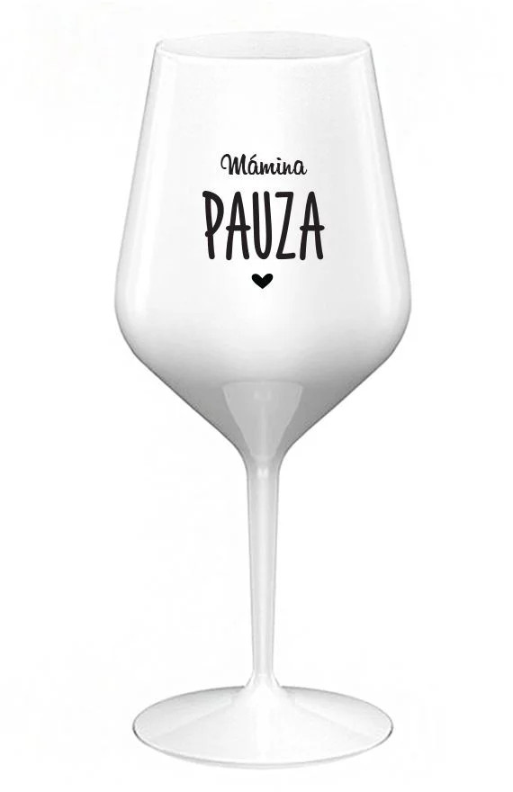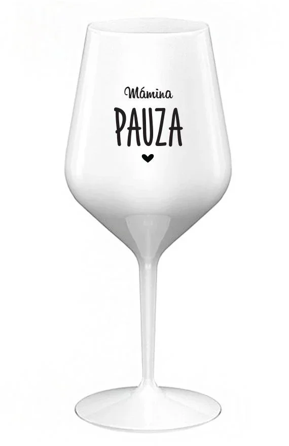 Nerozbitná bílá vinná sklenice s motivem MÁMINA PAUZA je skvělá na zahradu, pláž, výlet, piknik a parádu udělá i při kempování. Jelikož je vyrobená z kvalitního polykarbonátu je de facto nerozbitná. Je to luxusní kousek, s nímž si víno můžete vychutnat prostě kdekoliv. Mají ergonomický tvar, který příjemně padne do ruky a protože je lehká, usnadňuje to její přenášení. Je snadno skladovatelná a lehce se čistí. Díky svému designu si s ní můžete vychutnat doopravdy kdekoliv bezproblémové pití výborného vína.
