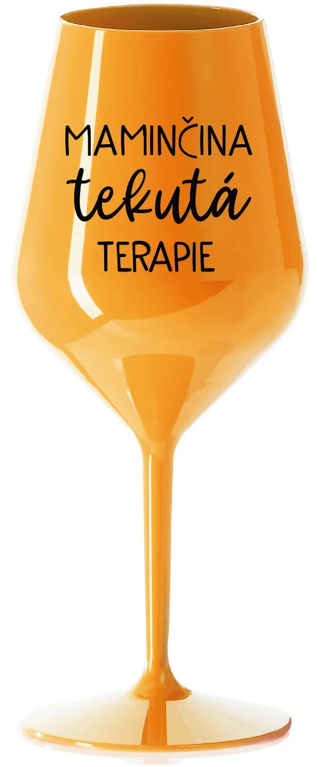 MAMINČINA TEKUTÁ TERAPIE - oranžová nerozbitná sklenice na víno 470 ml