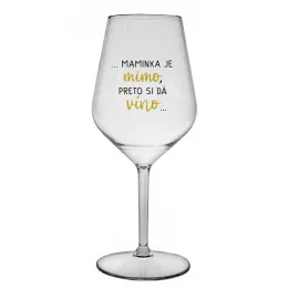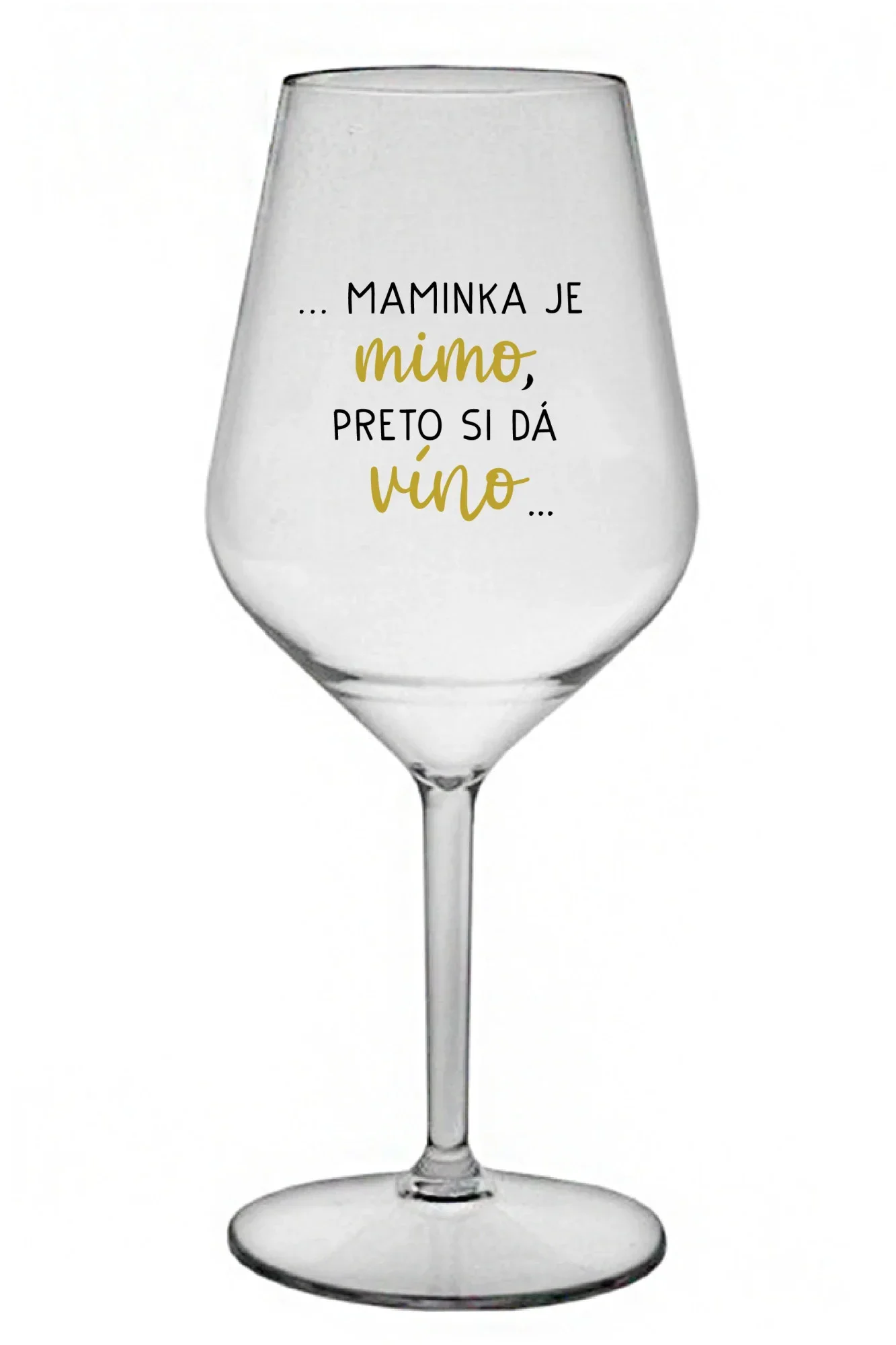 ...MAMINKA JE MIMO, PRETO SI DÁ VÍNO... - priehľadný nerozbitný pohár na víno 470 ml