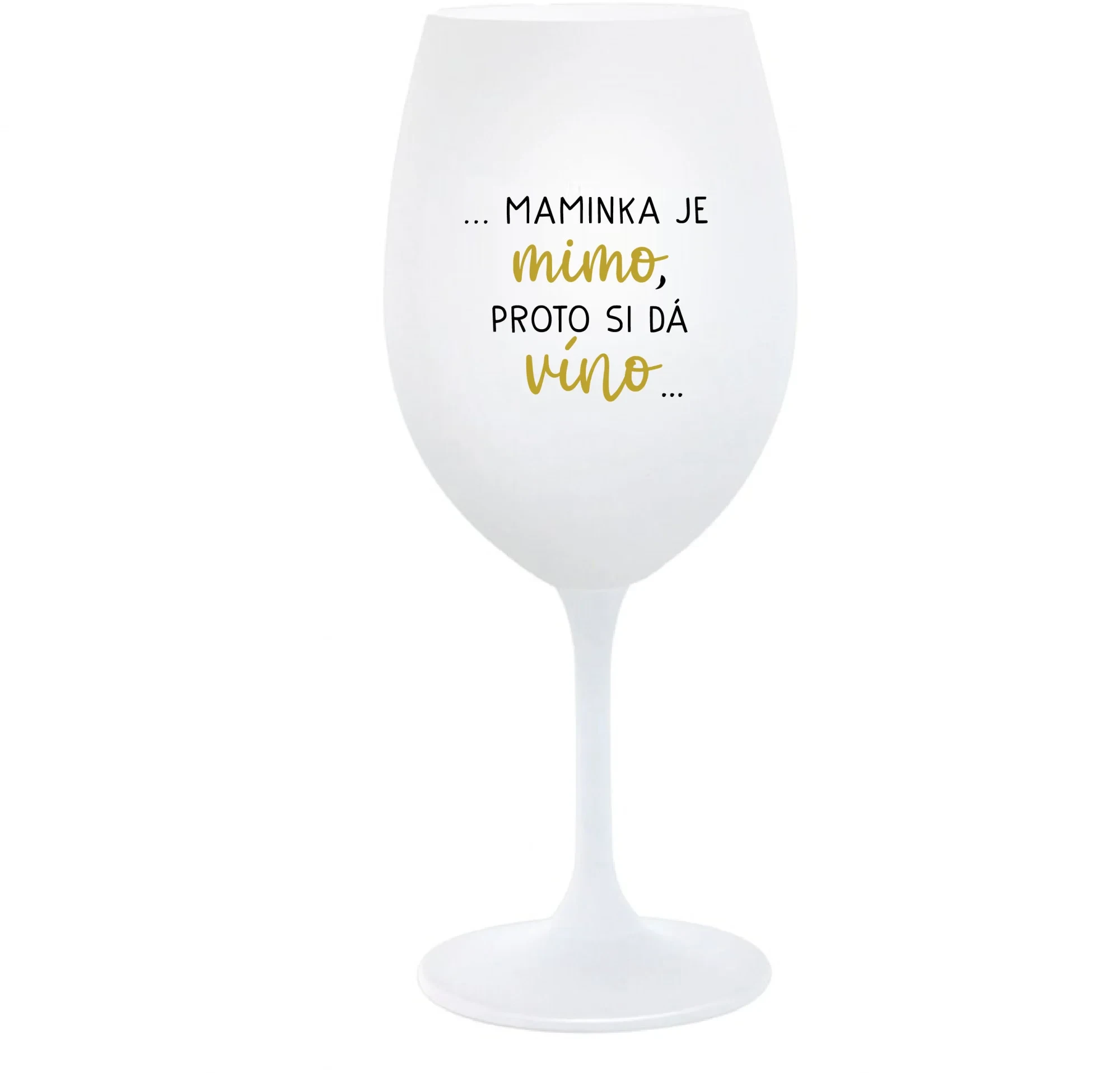 ...MAMINKA JE MIMO, PROTO SI DÁ VÍNO... - bílá sklenice na víno 350 ml