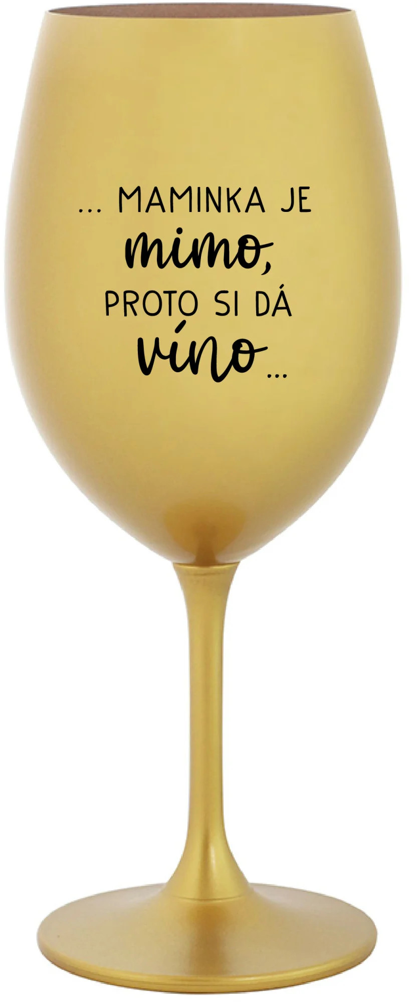 ...MAMINKA JE MIMO, PROTO SI DÁ VÍNO... - zlatá sklenice na víno 350 ml