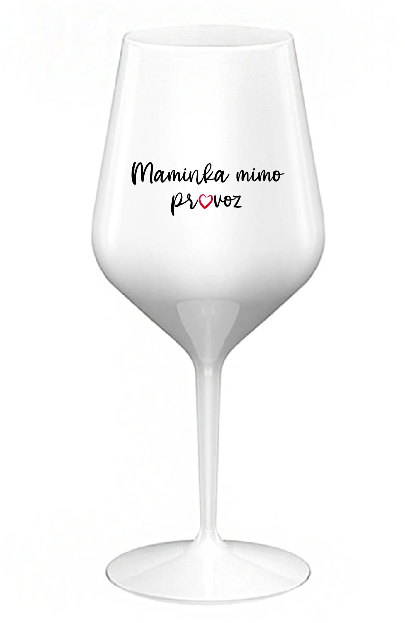 MAMINKA MIMO PROVOZ - bílá nerozbitná sklenice na víno 470 ml