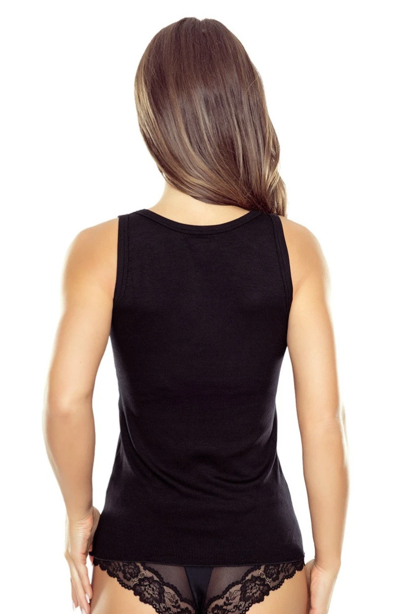 Koszulka damska Marcela to połączenie klasycznej elegancji i wyjątkowego komfortu noszenia. Wykonana z wysokiej jakości wiskozy (90%) z dodatkiem poliamidu i elastanu, idealnie dopasowuje się do sylwetki, podkreślając jej naturalne kształty. Model na szerokich ramiączkach zapewnia wygodę przez cały dzień, a subtelne, koronkowe wykończenie przy dekolcie nadaje całości zmysłowego charakteru. Czarna koszulka damska Marcela doskonale sprawdzi się zarówno jako element bielizny nocnej, jak i stylowa podkoszulka pod marynarkę czy sweter. Delikatna, oddychająca tkanina gwarantuje komfort noszenia niezależnie od pory roku. To idealna propozycja dla kobiet ceniących klasyczne fasony, ponadczasowy styl oraz wysoką jakość wykonania. Produkt został w 100% wyprodukowany w Polsce, z dbałością o każdy detal. Starannie dobrane materiały sprawiają, że koszulka zachowuje swój kształt i kolor nawet po wielu praniach.