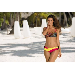 Podprsenka má vyztužené košíčky pokryté pěkným, potištěným vzorem v krásných, exotických barvách. Ve spodní části (i na bocích) podprsenky jsou kostice, které tvarují prsa. Velikosti S, M, L, XL mají také kapsičky na přiložené (vyjímatelné) push-up košíčky. Umístěte je do košíčků a vaše poprsí se zvedne, prsa se k sobě přiblíží a sexy zvětší, čímž vytvoří vysněný dekolt. Obvod podprsenky je elastický, vzadu je zapínání na přezku. Ramínka jsou délkově nastavitelná, můžete je zcela odepnout a pohodlně se opalovat.