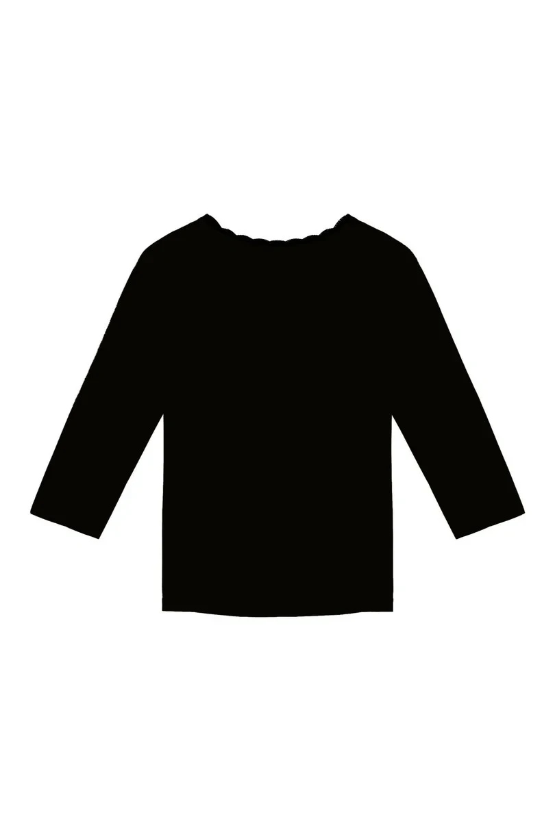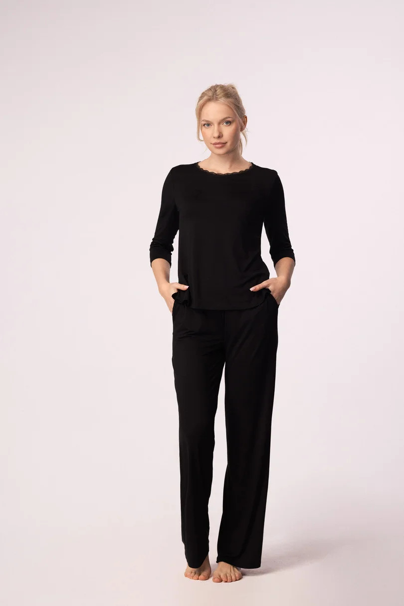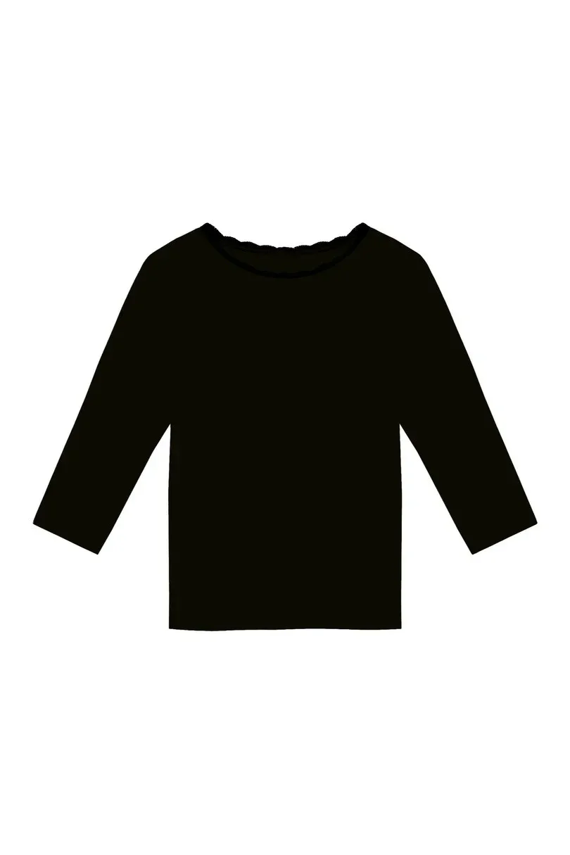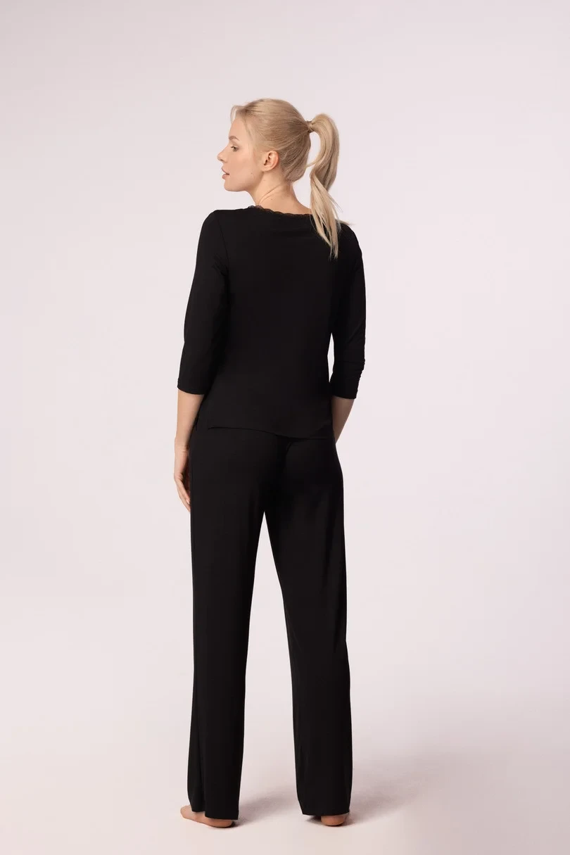 Dámská viskózová halenka s 3/4 rukávy, kulatý výstřih zakončený krajkou.