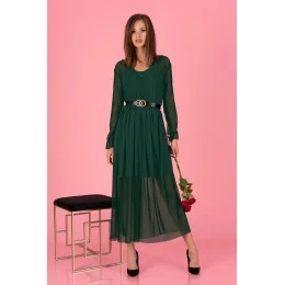 Dlouhé šifonové šaty na dvojitém tylu v krásném tmavě zeleném odstínu. Ideální na Vánoce i mimo ně. Je vyrobeno z elastické tkaniny, takže je měkké a snadno se přizpůsobí. Hladký překrývající se přední díl, dlouhé elegantní rukávy. Vzdušný, neuvěřitelně ženský styl. Ps. Pás patří k soupravě. Složení: 95% viskóza, 5% elastan.EAN čárové kódy zboží jsou: