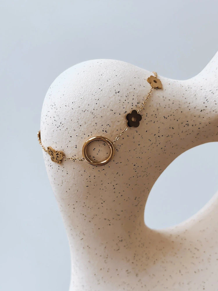 Náramek MARIPOSA je jemným návrhem pro každou z vás. Květinové prvky ve zlaté barvě působí úžasně. Bude se hodit ke každodennímu i formálnějšímu oblečení.