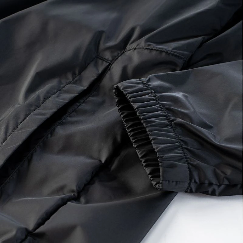 - Stahovací šňůrky v pase zajišťují pohodlné nošení. Představený model má navíc dvě boční kapsy a kapuci.