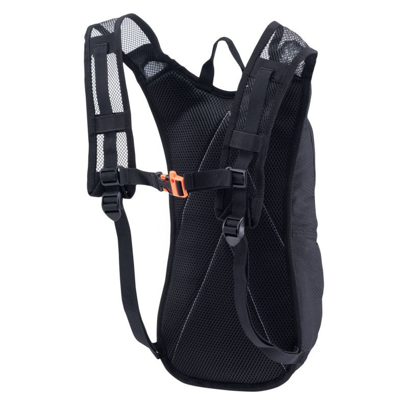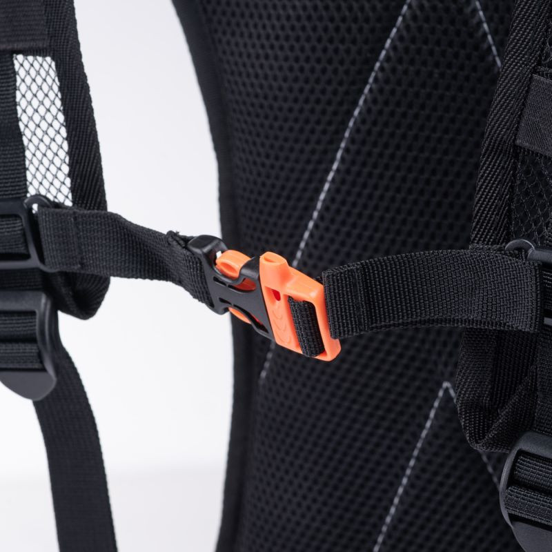 Síťovaná konstrukce zad a popruhů podporuje lepší odvod vlhkosti a rychlejší schnutí. Píšťalka zabudovaná v hrudním popruhu a reflexní prvky zvýší vaši bezpečnost na cestách.