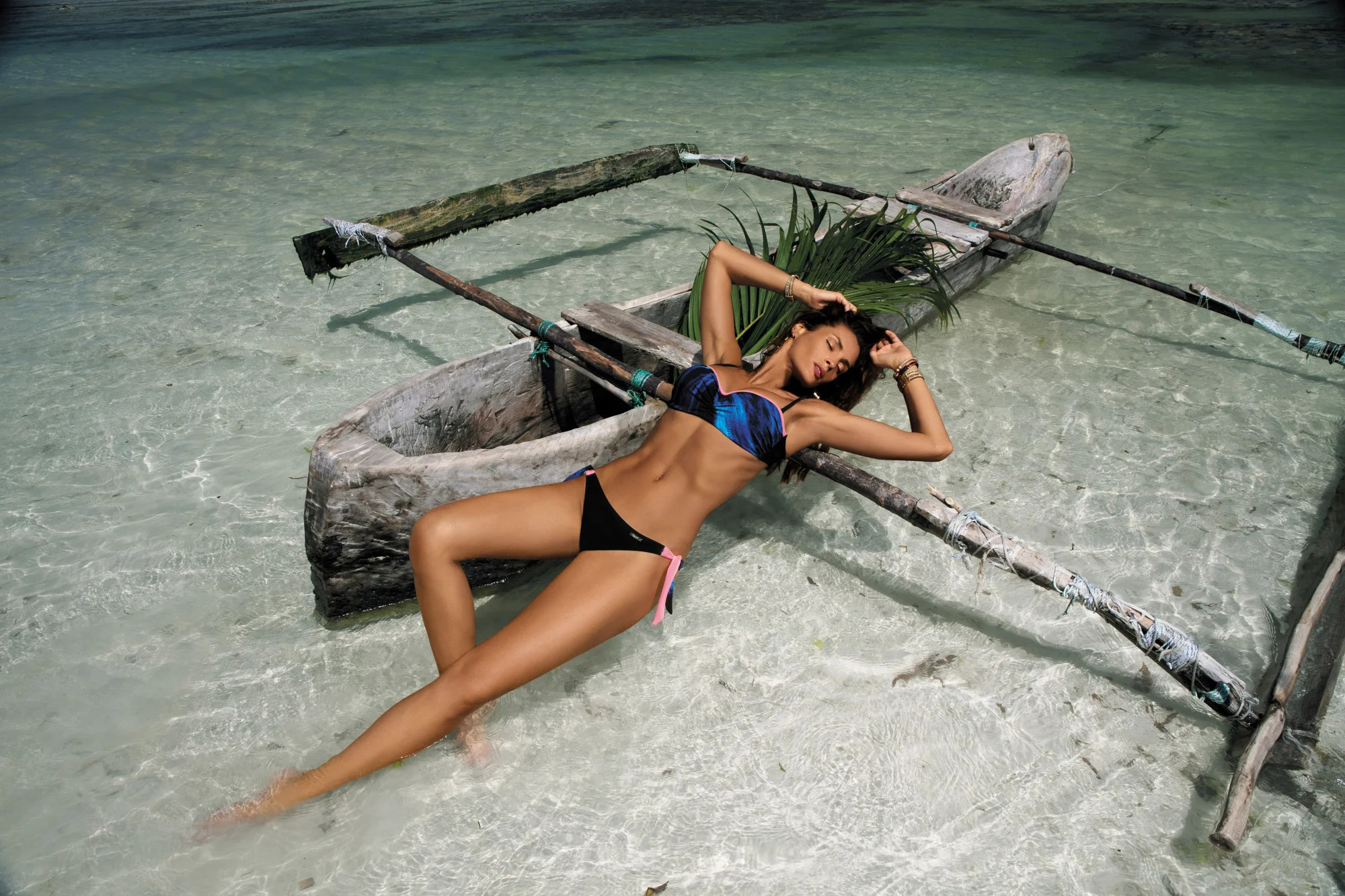 Jedinečné plavky, v nichž si se vzhledem pohrávají zajímavé odlesky na tmavším pozadí. Něco, co jste ještě neměli! Podprsenka zaujme svým designem a konstrukcí - dokonale shromažďuje prsa, silně je zvedá a opticky zvětšuje. Vytváří výstřih, o kterém sní většina žen. Model je navržen pro malé a střední poprsí. Košíčky jsou vyztužené, s kosticemi a mají připojené push-up vycpávky (k dispozici ve velikostech S, M, L, XL). Odnímatelné, nastavitelné popruhy. Spodní díl se pohodlně zavazuje na bocích.