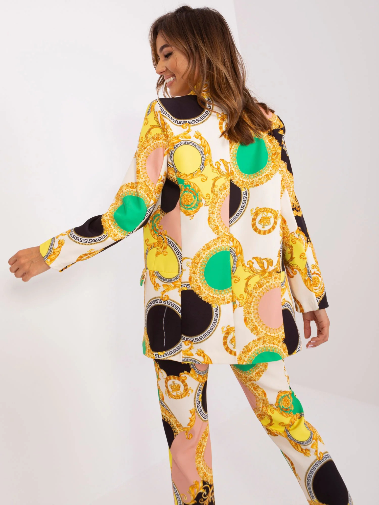 Wymiary marynarki w rozmiarze S mierzone na płasko: szerokość pod pachami - 48 cm, długość rękawa - 56 cm, długość całkowita - 72 cm.