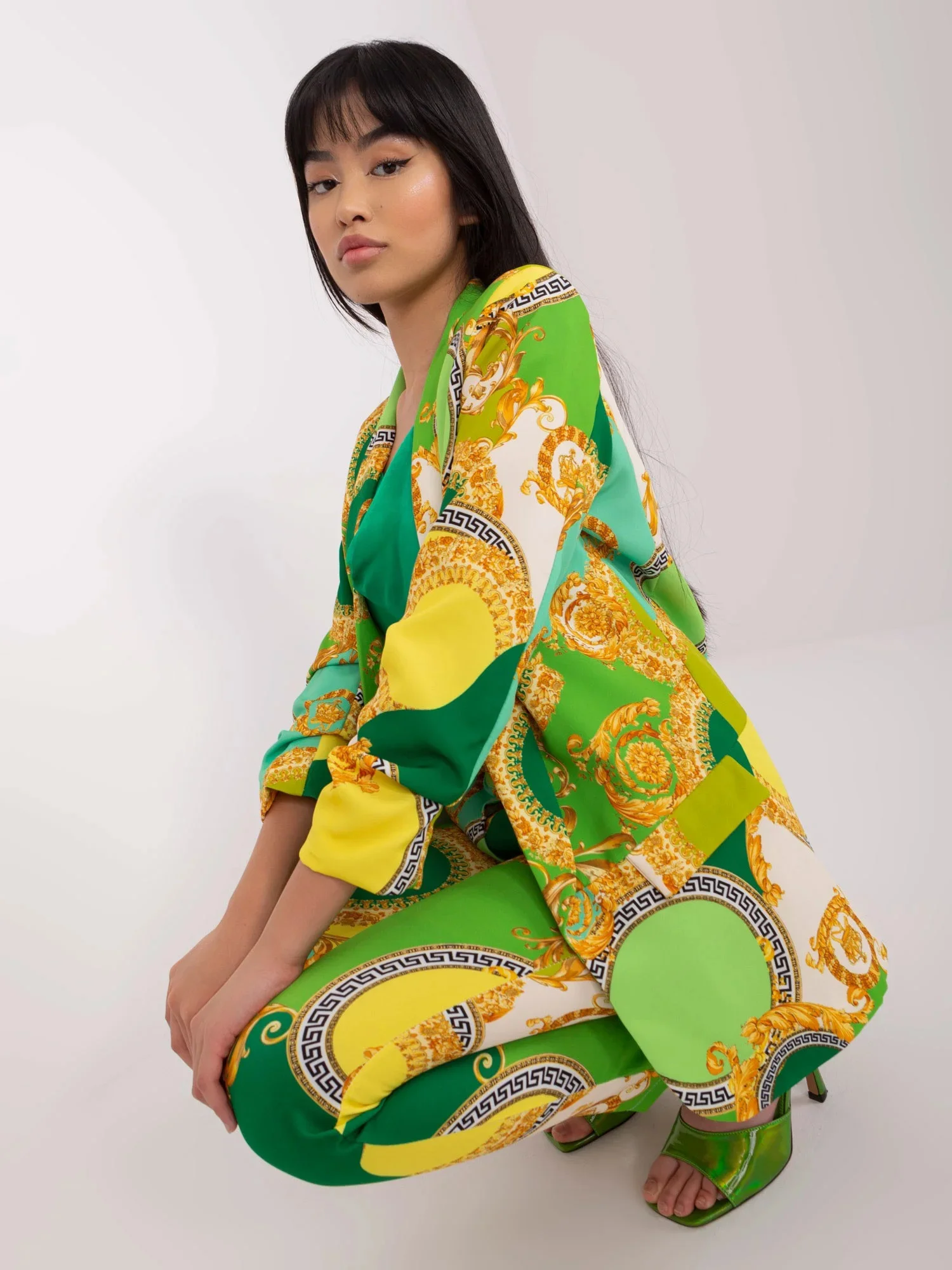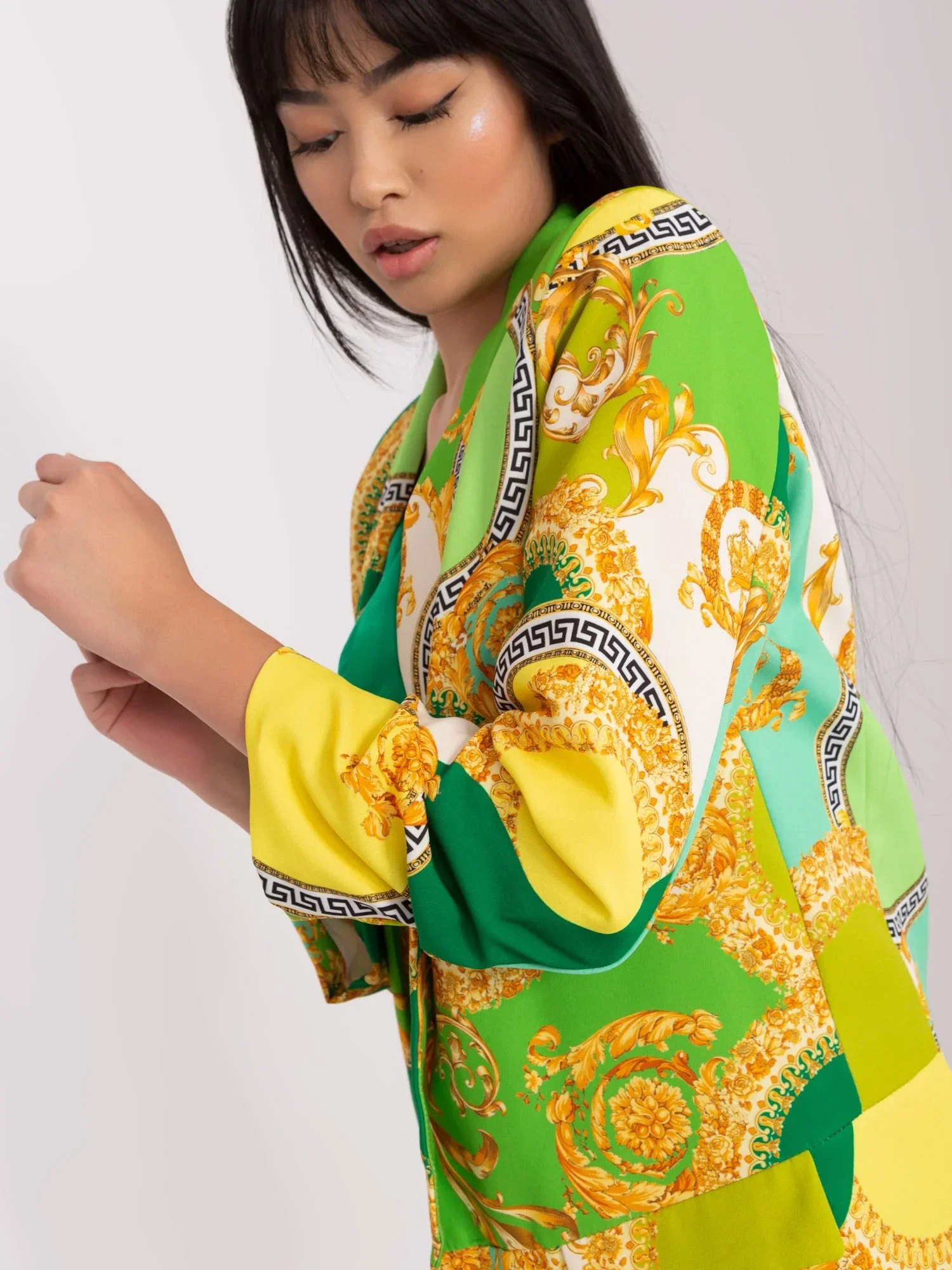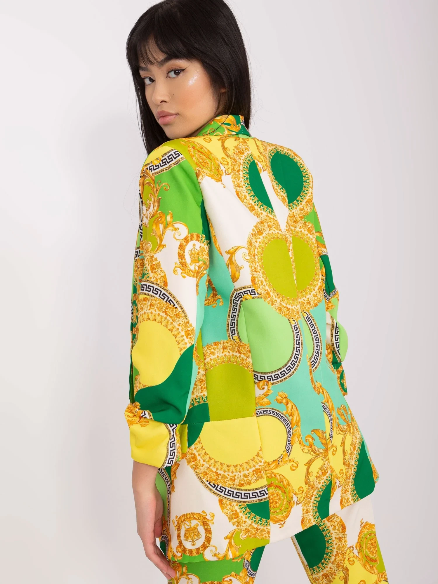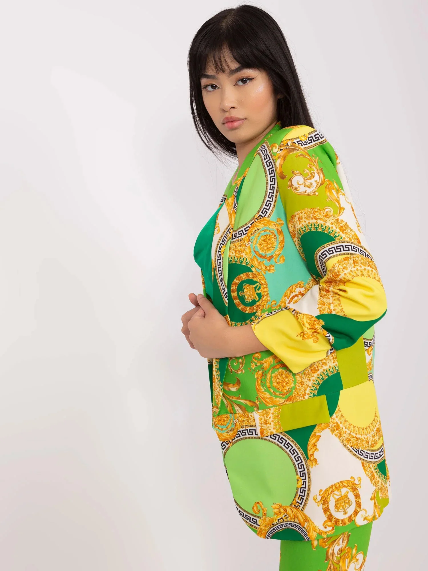 Zielono-żółta damska marynarka z rękawem 3/4 .