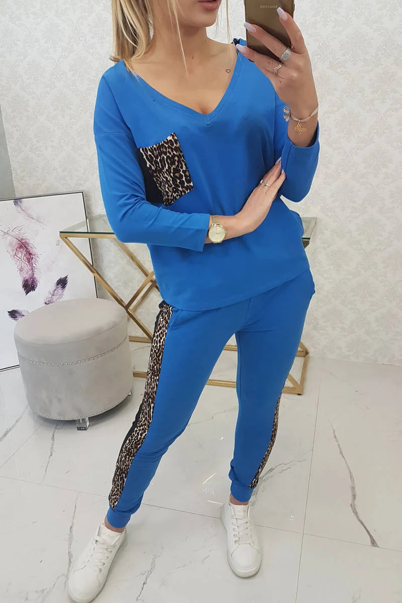 Představujeme vám sadu halenky a kalhot. Sada má vložky s motivem pantera. Halenka s kapsičkou na přední straně. Kalhoty mají kapsy. Sada je vyrobena z vysoce kvalitního materiálu. Velikost je univerzální a vyhovuje dámám, které nosí velikost S, M nebo L.
