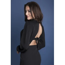 Černá, lehce lesklá mašle z velmi kvalitní pásky vám umožní originálně ozdobit velký výstřih na zádech.