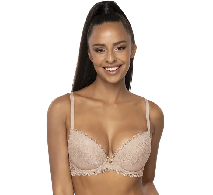 Podprsenka značky Mat, model Estelle 0198/11/2. Má drátky, které podporují prsa a vhodně je tvarují. Výrobek má nastavitelná ramínka bez možnosti jejich odepnutí. Zapínání na háčky a očka. Místo zapínání: na zádech. 2 řady svislých výšivek. 3 úrovně vodorovných výšivek. Výrobek je vyroben z 29 % polyamidu, 26 % bavlny, 22 % polyuretanu, 20 % polyesteru, 5 % elastanu. Dámský výrobek. Výrobek má kapsy na vložky.
