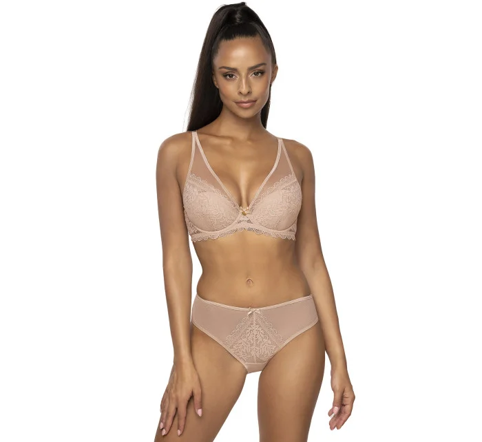Podprsenka značky Mat, model 0198/11 Estelle, má drátky, které podporují a tvarují prsa. Svislé kostice na bocích. Výrobek má nastavitelná ramínka bez možnosti odepnutí. Kovové háčky na ramínka. Zapínání na háčky. Místo zapínání: na zádech. 2 řady svislých háčků. 3 úrovně vodorovných háčků. Výrobek je vyroben ze 42 % polyamidu, 22 % bavlny, 19 % polyuretanu, 15 % polyesteru, 2 % elastanu. Výrobek má kapsy na vložky. Dámský výrobek.Parametry