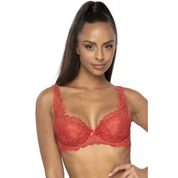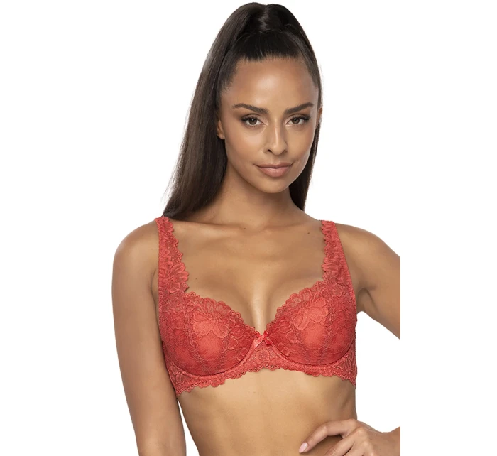 Podprsenka značky Mat, model 053/22 Carmela. Má drátky, které podpírají prsa a vhodně je tvarují. Výrobek má nastavitelná ramínka bez možnosti jejich odepnutí. Podprsenka se zapíná na háčky. Místo zapínání: na zádech. 2 řady svislých výšivek. 3 stupně vodorovných výšivek. Výrobek je vyroben ze 44 % polyamidu, 17 % bavlny, 17 % polyesteru, 17 % polyuretanu, 5 % elastanu. Vlastnosti výrobku: krajkový ženský krásný elegantní.