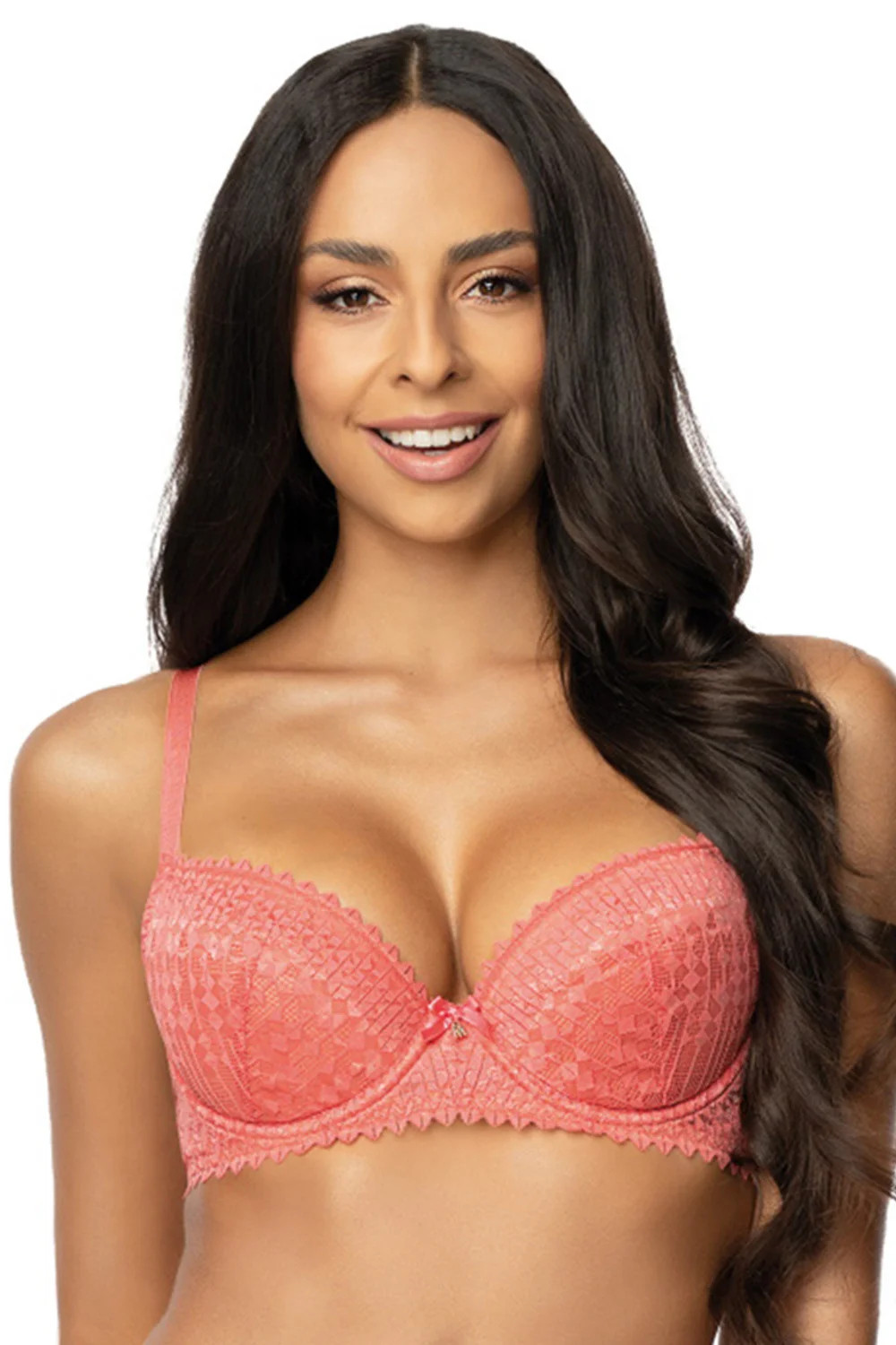 Podprsenka Mat, model 3633/11 Maddie, má drátky pro podporu a tvarování prsou, nastavitelná ramínka, kovové háčky na ramínkách, zapínání na háčky, dvě řady svislých háčků, tři řady vodorovných háčků, vyrobená z 27 % polyamidu, 27 % bavlny, 21 % polyesteru, 21 % polyuretanu, 4 % elastanu, dámská, s vloženou kapsou.