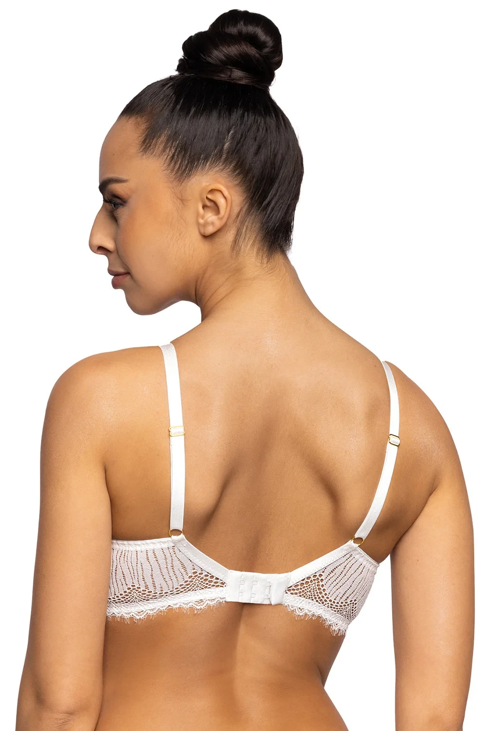 Podprsenka 3735/11/1 značky Mat, model 3735/11/1 Liza, je vyrobena z 43 % polyamidu, 22 % bavlny, 19 % polyuretanu, 15 % polyesteru, 1 % elastanu. Výrobek má nastavitelná ramínka bez možnosti odepnutí. Zapínání na háčky. Místo zapínání: na zádech. 2 řady svislých háčků. 3 úrovně vodorovných háčků. Výrobek je vyroben z 43 % polyamidu, 22 % bavlny, 19 % polyuretanu, 15 % polyesteru, 1 % elastanu. Výrobek má kapsy na vložky. Dámský výrobek. Boky vyztužené látkou.