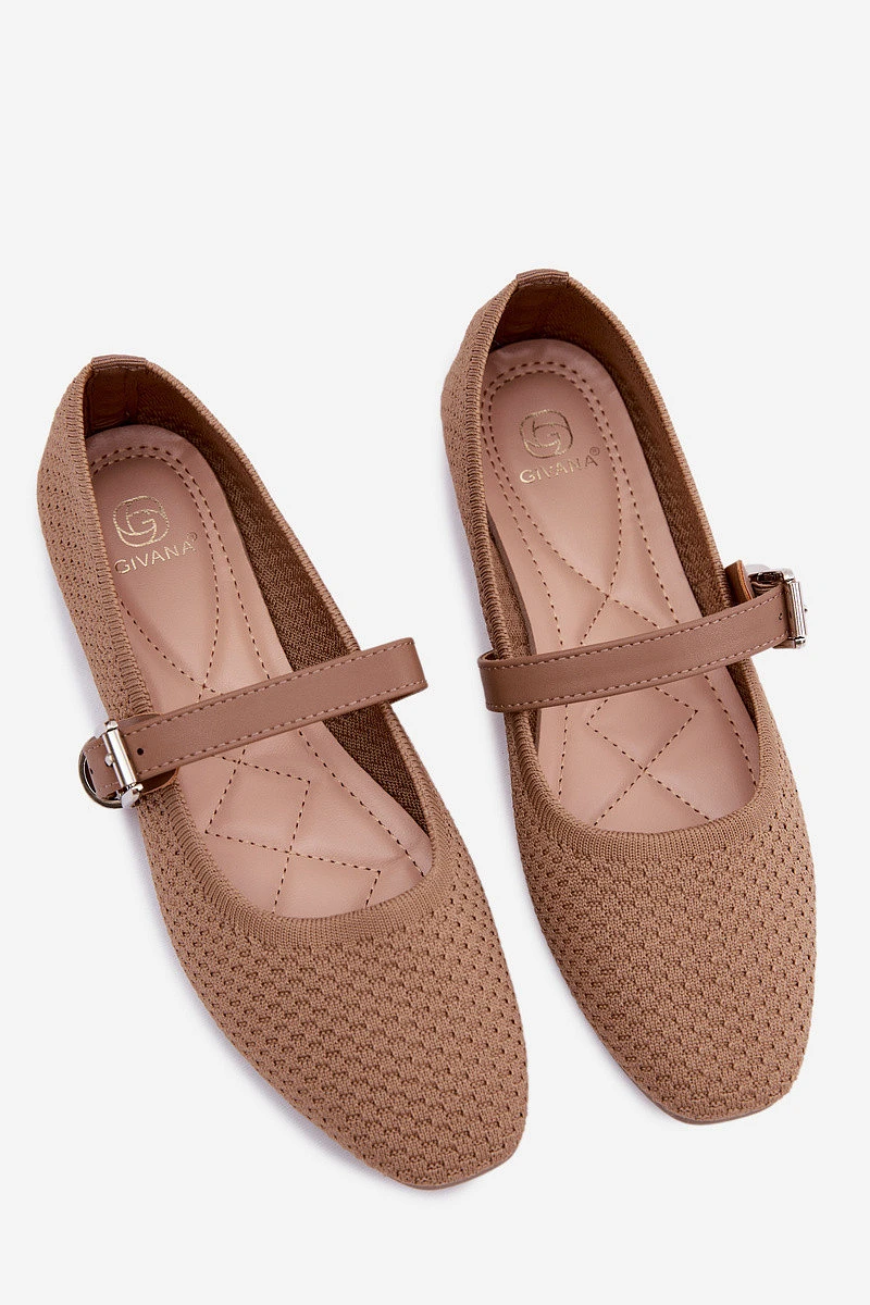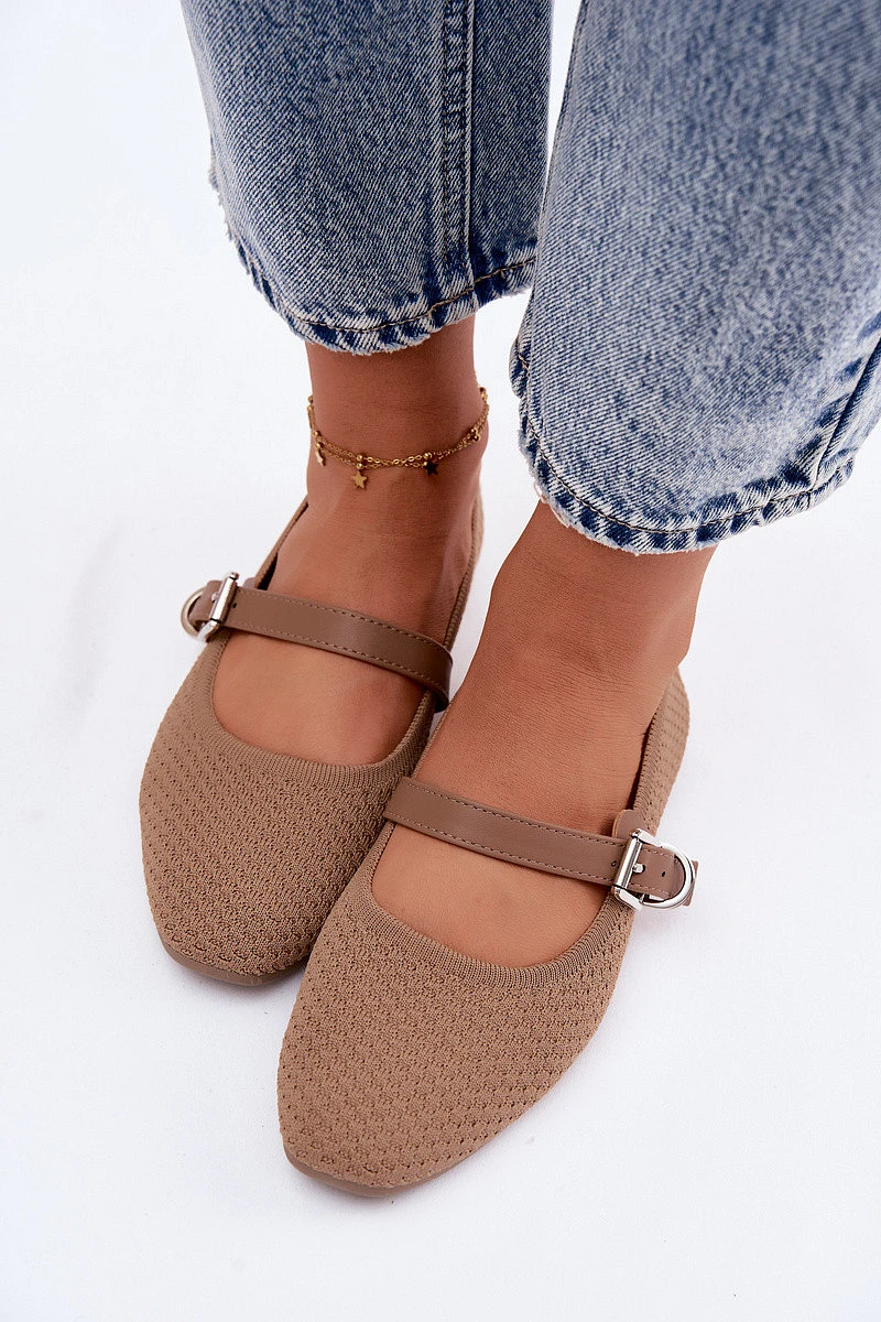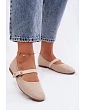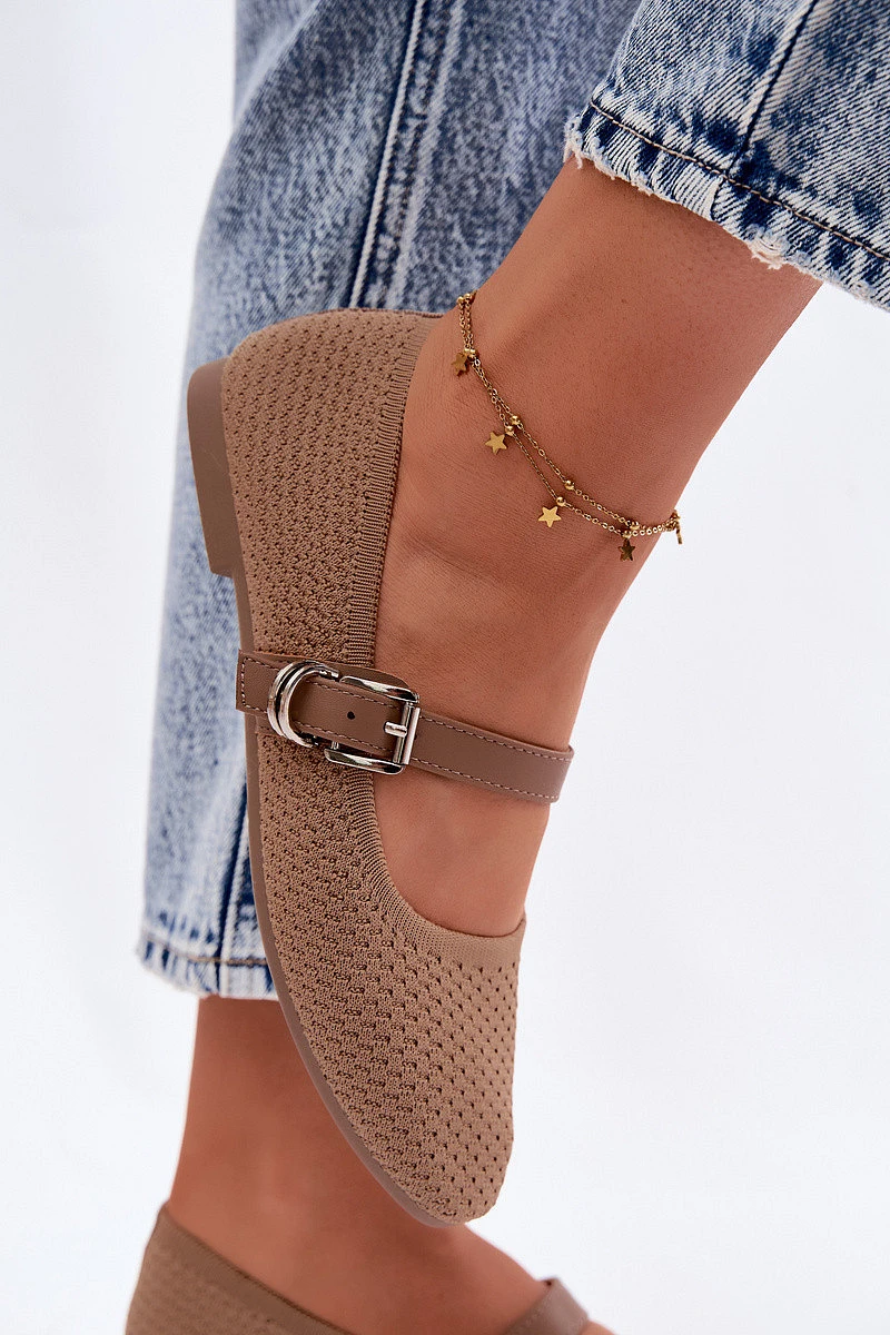 Materiálové baleríny s páskem a přezkou Khaki Jelisa