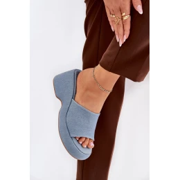 Materiálové Dámské Pantofle Na Platformě A Klínu Džínové Afisal